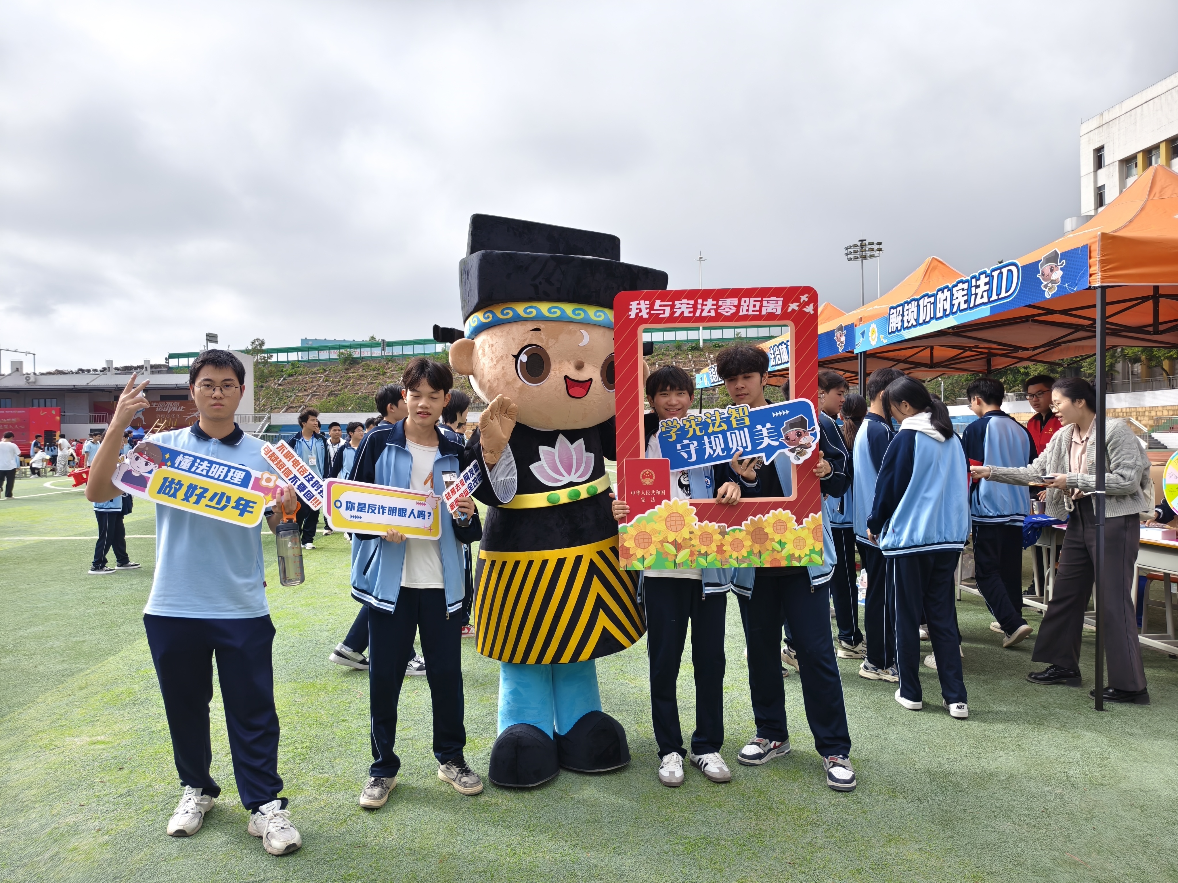 2025年12月1日,端州区司法局到肇庆市技师学院大冲校区开展“宪法+成人礼”法治嘉年华活动,现场学生合影留念。 受访者 供图
