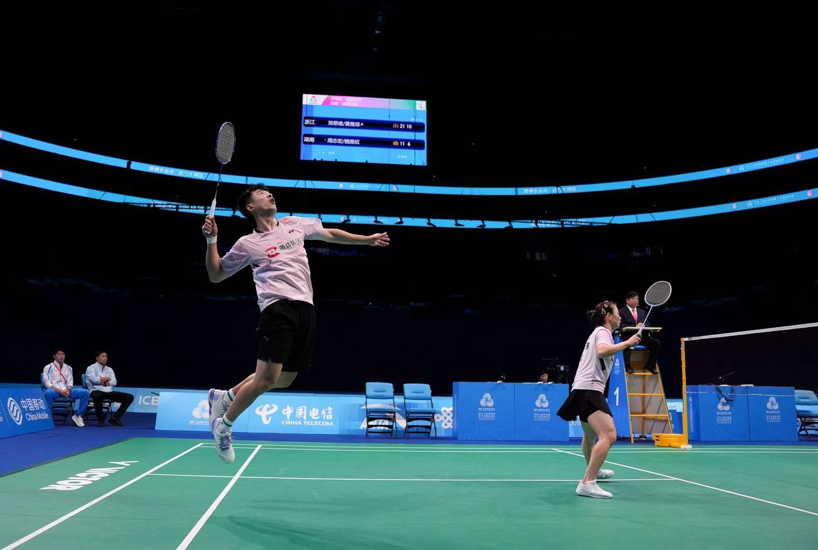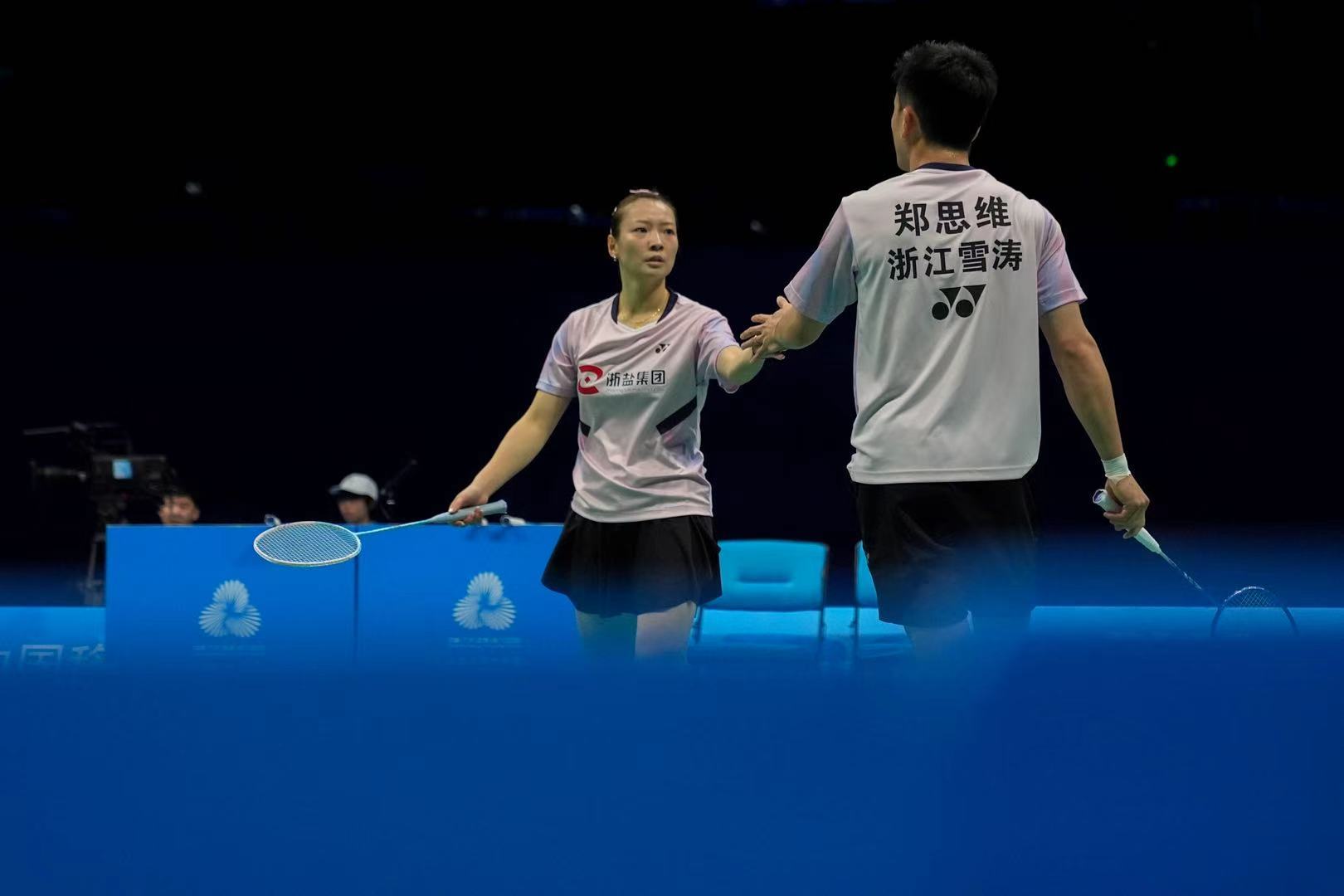 在11月20日举行的第十五届全国运动会羽毛球混合双打决赛中,浙江队“雅思组合”郑思维/黄雅琼以2:0的比分,战胜湖南队的周志宏/魏雅欣,职业生涯首次夺得全运会金牌,也为他们辉煌的羽毛球生涯画上圆满句号。两场比分分别为21:11、21:12。
