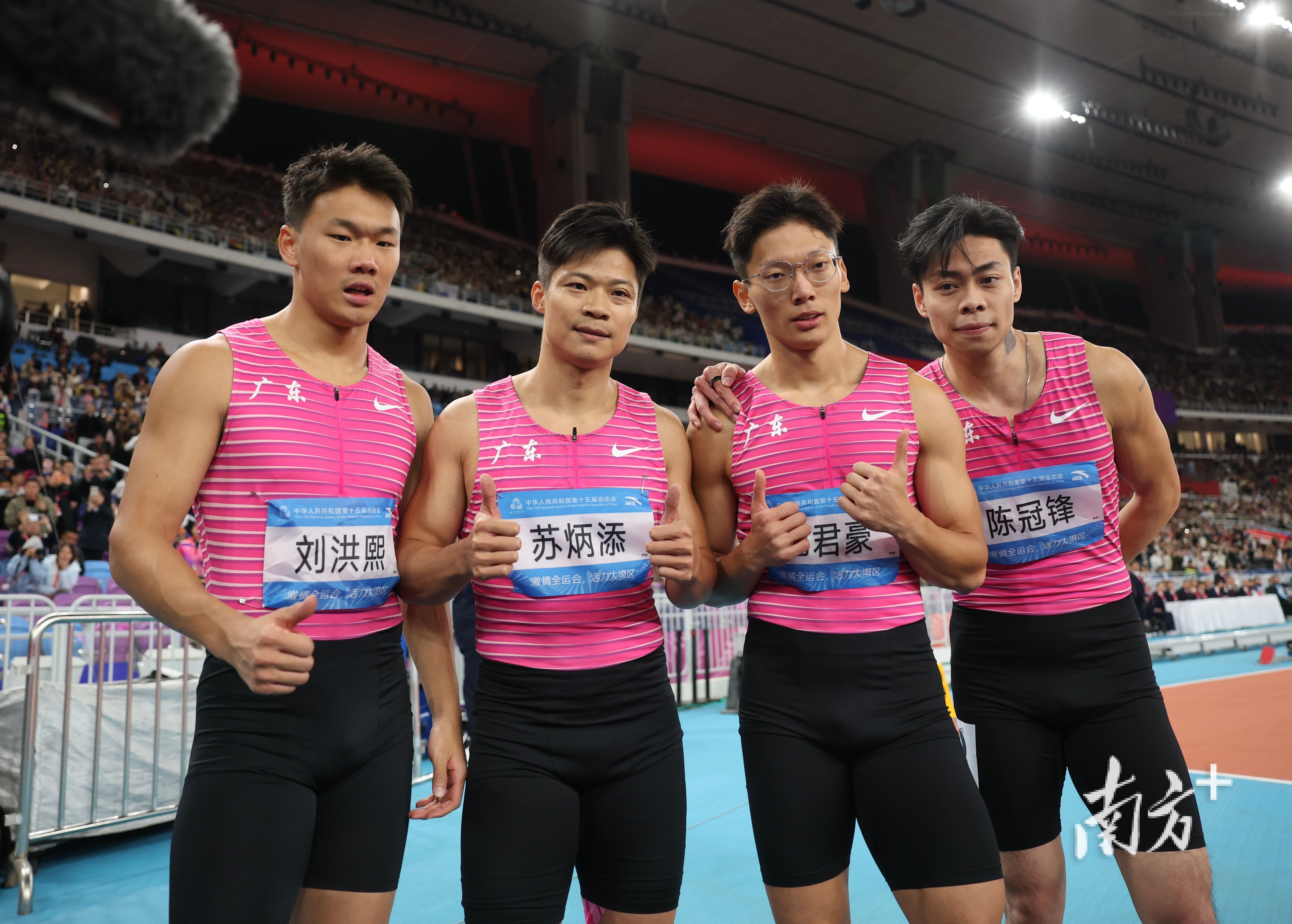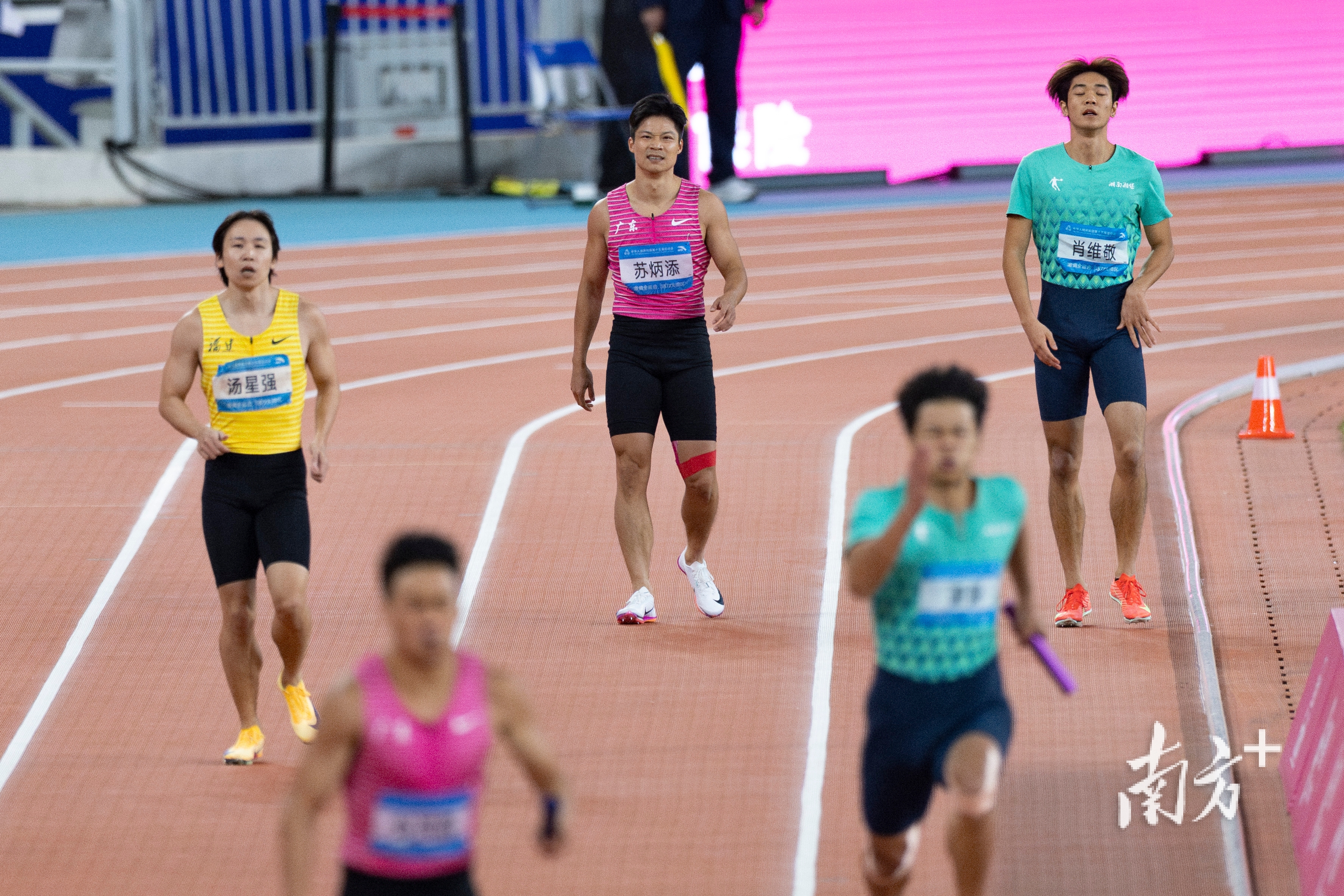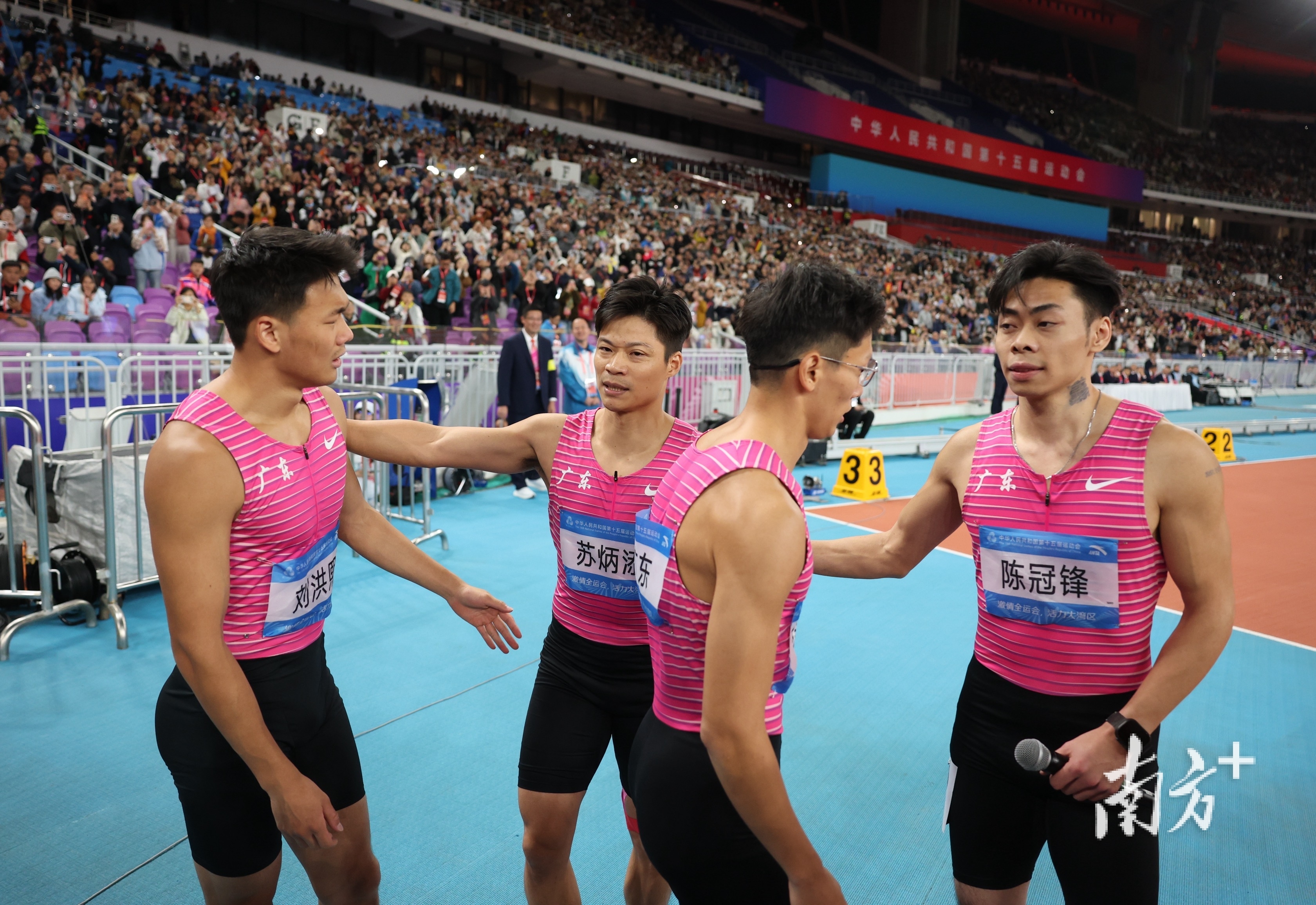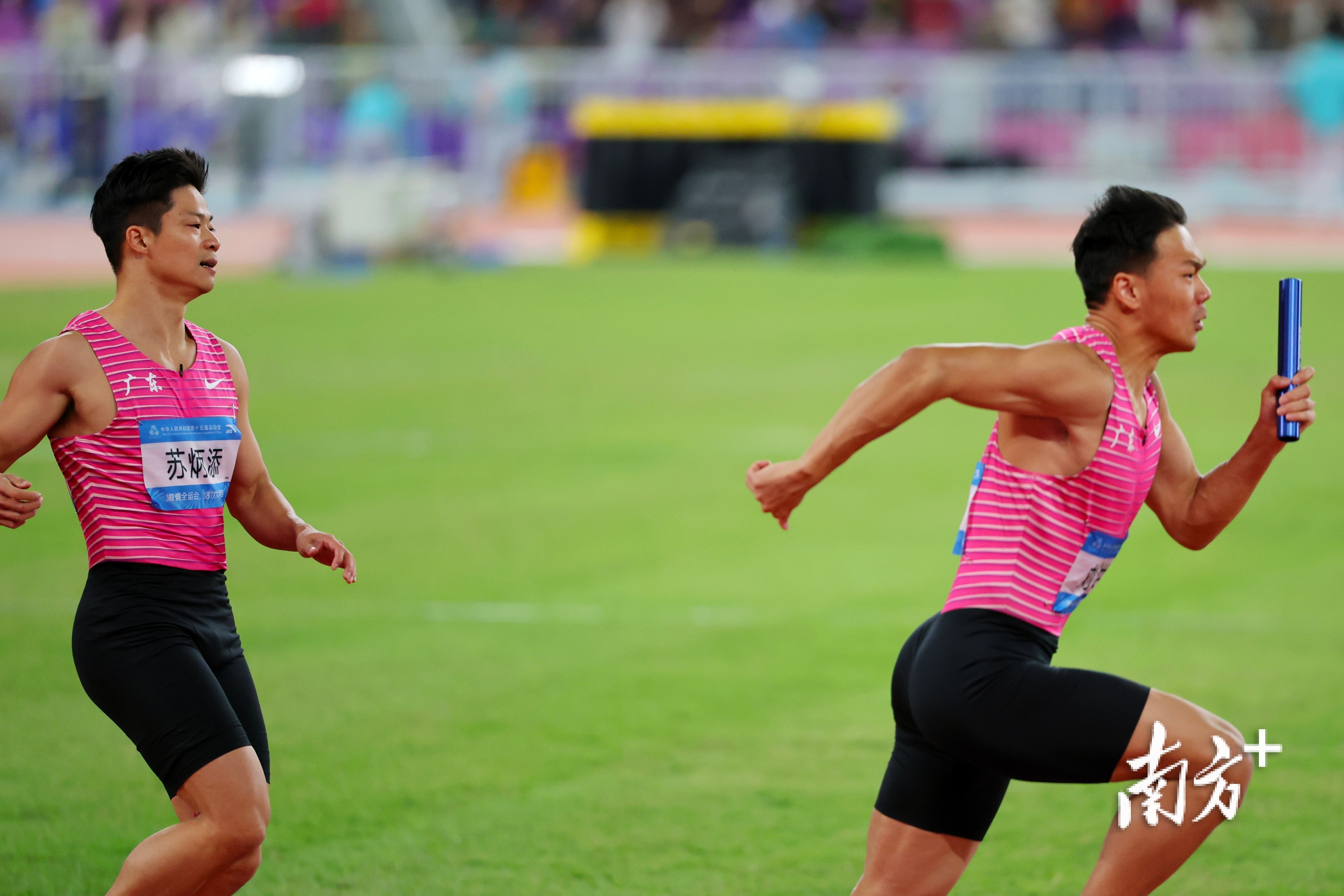 “我要感谢苏炳添大哥这么多年为我们中国短跑这个项目付出了这么多,让全世界都知道我们中国短跑,都知道我们黄种人也一样能突破10秒。”广东队第四棒选手陈冠锋说,“即使离开了短跑赛道,也祝愿他在生活的赛道上越来越好。”