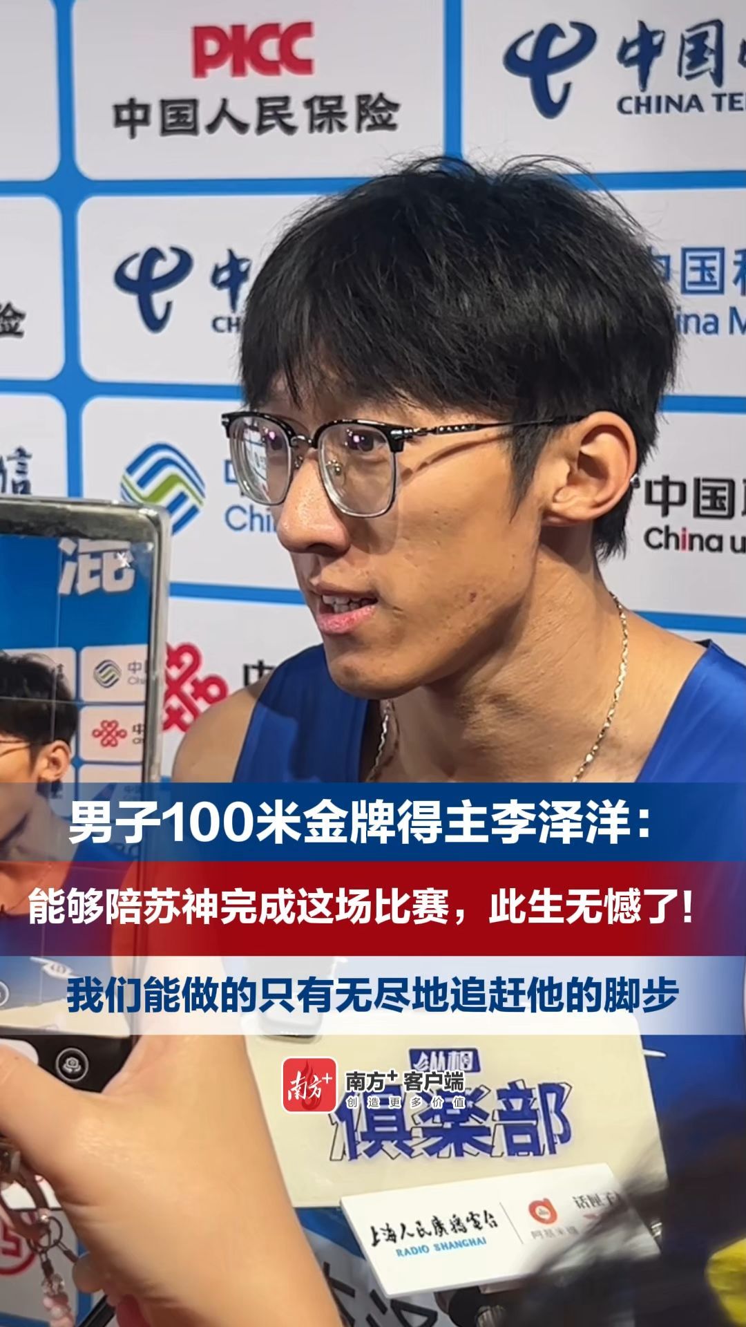 男子100米金牌得主李泽洋: 能够陪苏神完成这场比赛,此生无憾了!