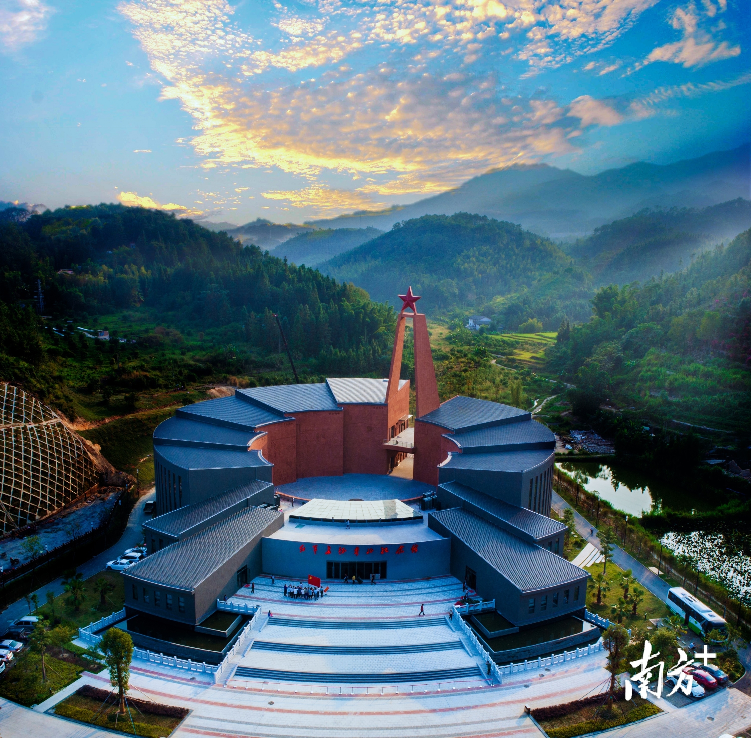 远观粤北红军长征纪念馆,灰瓦红檐的轮廓在晴空下格外鲜明,屋顶上的红五星,犹如百年来闪耀在粤北青山碧水间的星火,稳稳扎根在粤北的红色沃土上。