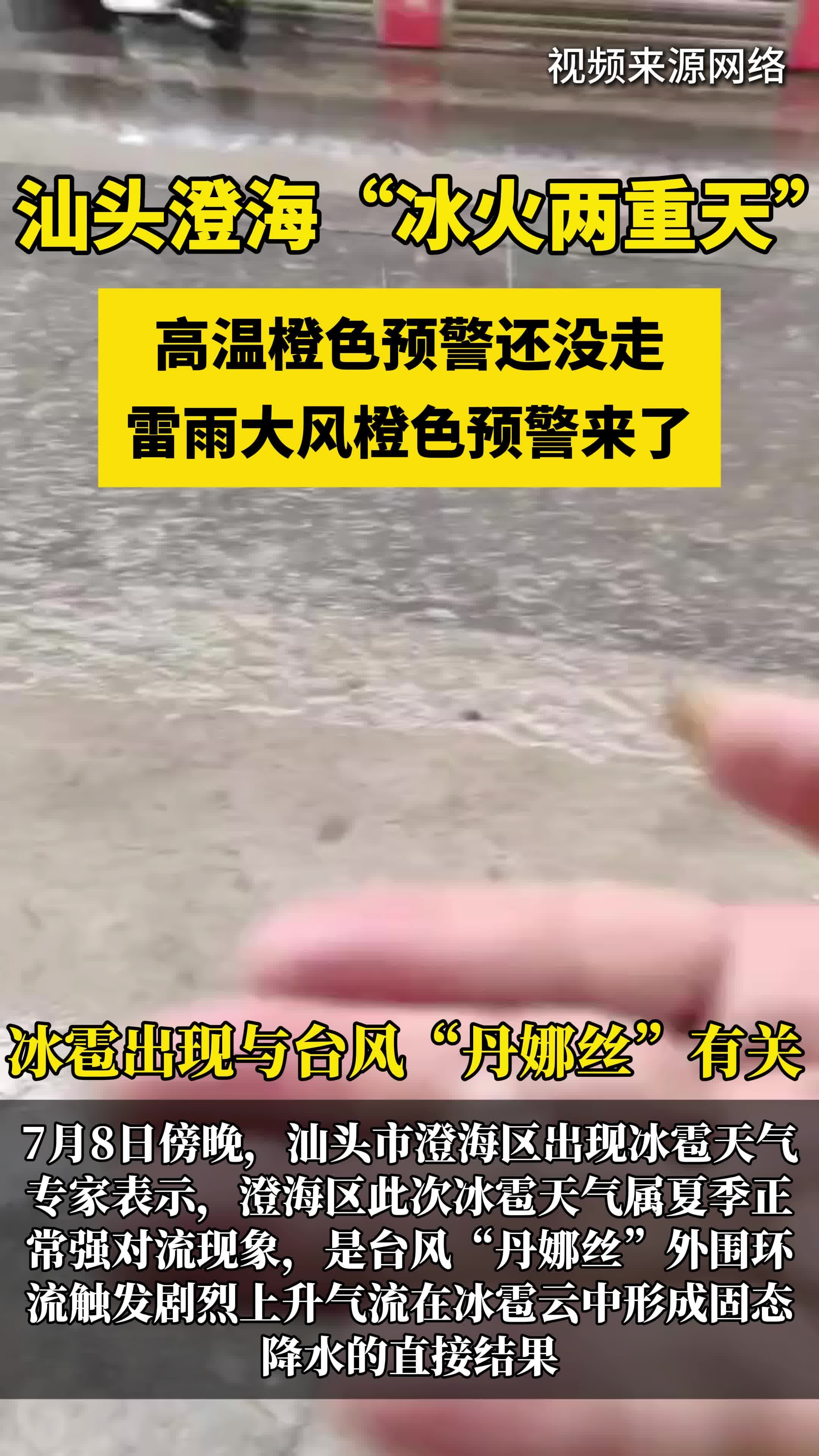 南方+记者从汕头市气象部门了解到,澄海区此次冰雹天气的出现,与台风“丹娜丝”外围环流有关。受其外围下沉气流影响,汕头地区近日气温较高,积存了大量不稳定能量。大气稍有扰动,这些能量便剧烈释放,触发了包含冰雹在内的激烈强对流天气。