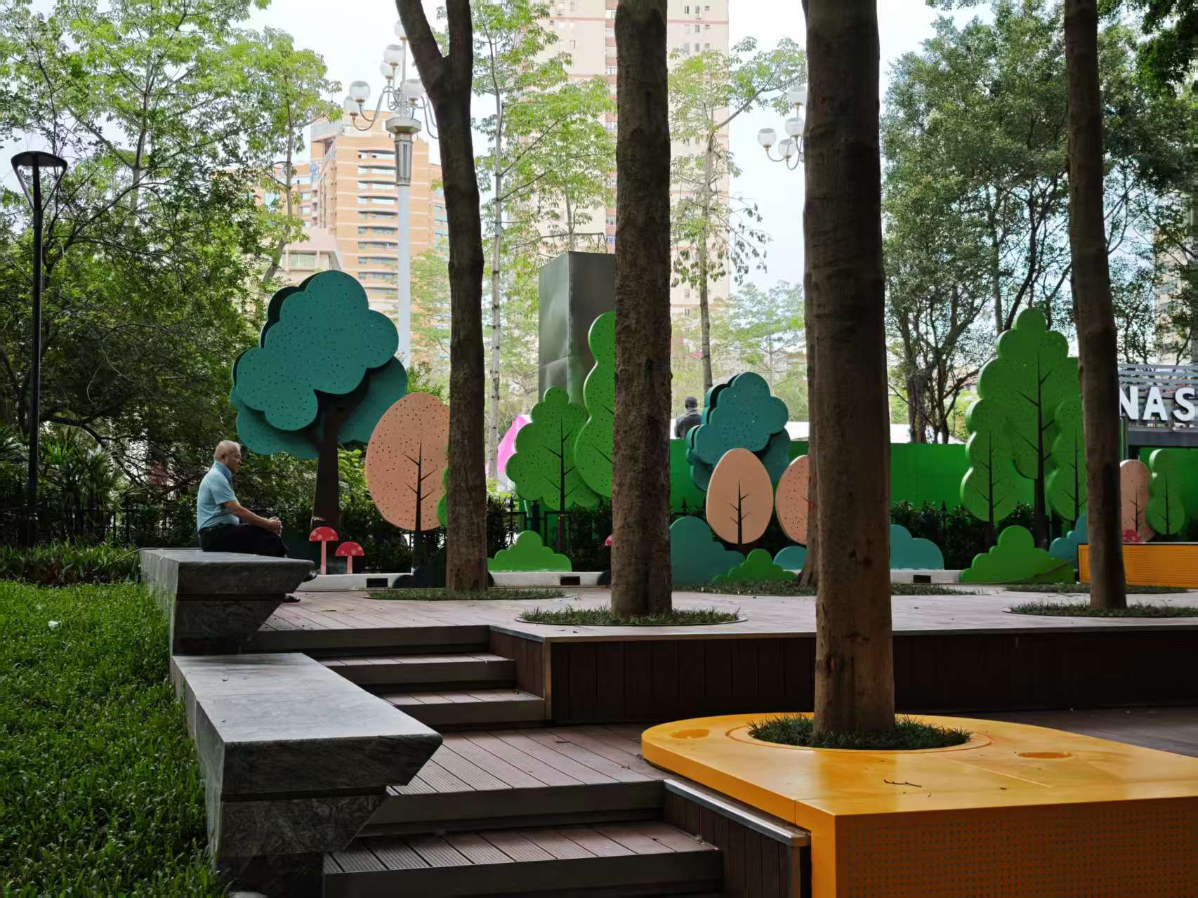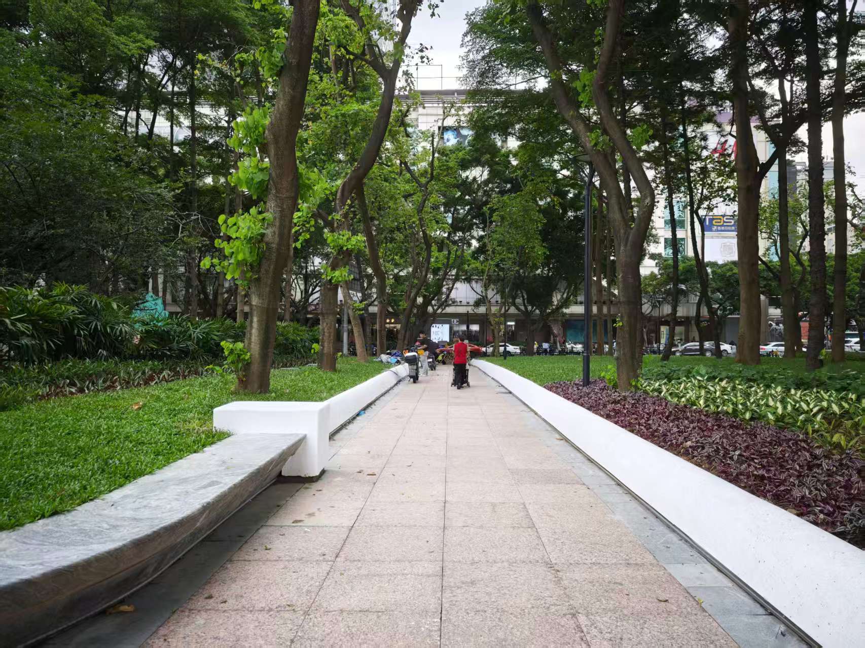 广东省建筑设计研究院集团股份有限公司副总建筑师区展辉表示,“在设计方案中,我们也有意优化广场两侧的绿植,形成高低错落的空间,改善以往逼仄阴暗的格局,延续街区绿化生态景观,同时也增强广场两侧空间的序列感。”