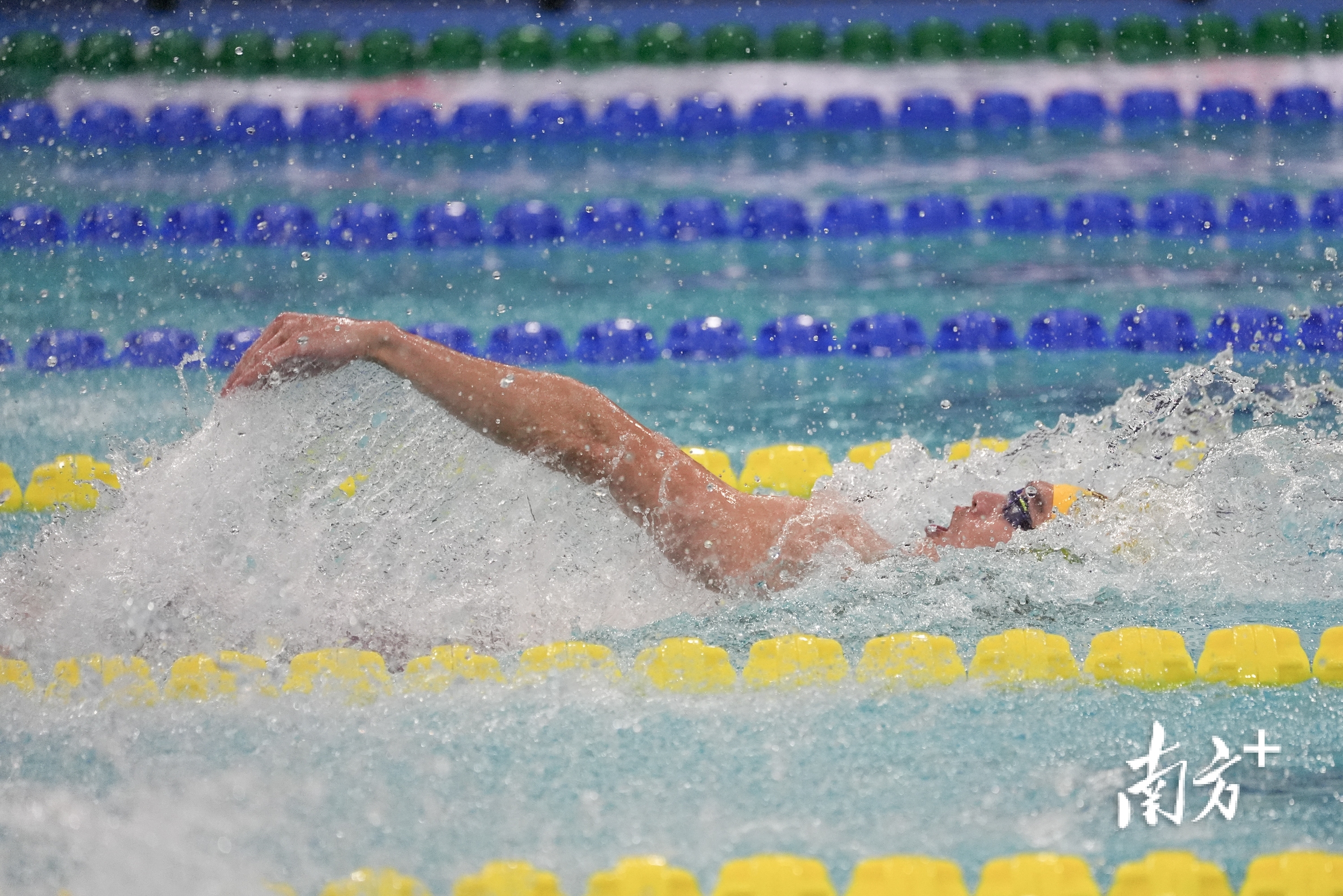 11月12日晚,十五运会游泳项目进入第3个比赛日。在男子200米自由泳决赛中,张展硕发挥出色斩获金牌。朱洪波 摄
