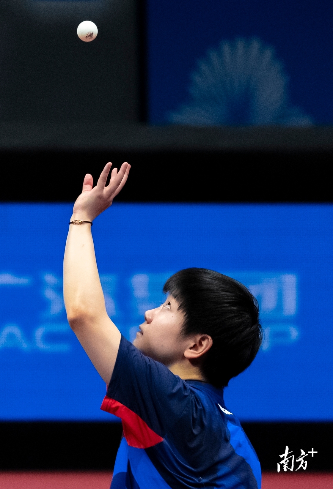 孙颖莎在比赛前试球。董天健 摄