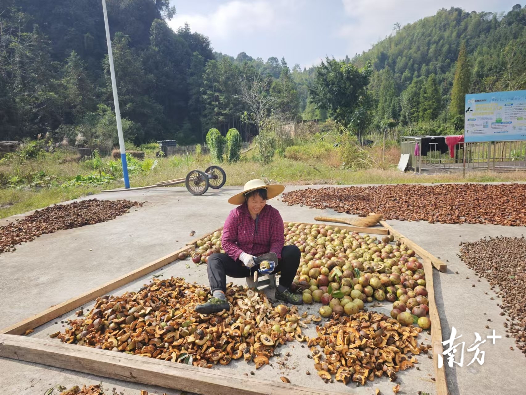 更让村民开心的是,茶油茶“全身是宝”:剥下的果壳不用丢,晒干了能当柴火烧,烧后的灰烬还能做“灰水”(传统洗涤、烹饪用料),既省了开支,又多了份“循环收益”。