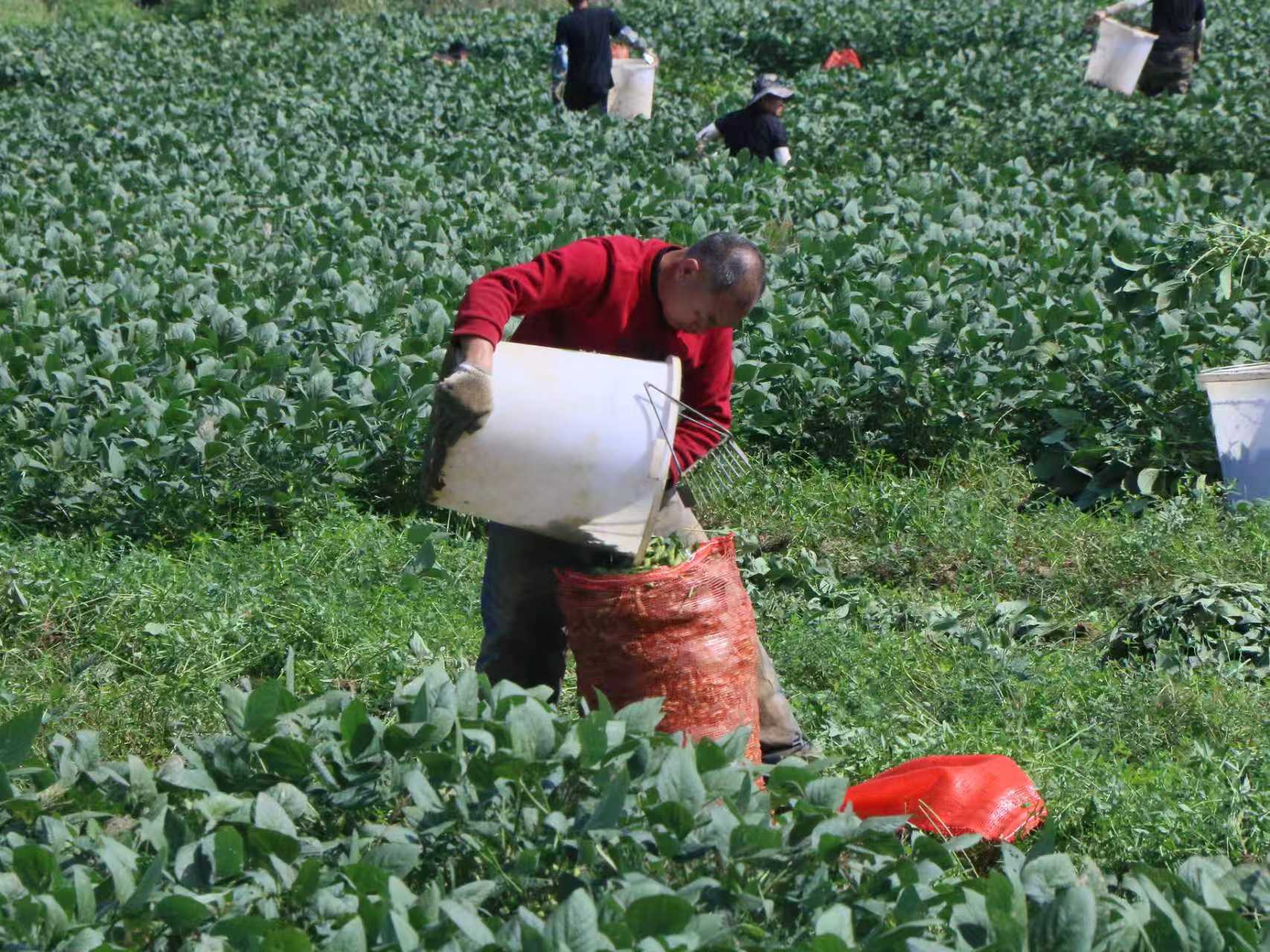 走进毛豆种植基地,长势旺盛的毛豆叶铺满了田垄,一串串沉甸甸、圆鼓鼓的毛豆挂满枝头,豆荚嫩绿,粒大饱满。据了解,兴中村“小田变大田”撂荒地整治模式的成功落地,离不开新农民群体的积极参与,更得益于华城镇乡村振兴人才驿站的桥梁作用,吸引带着先进种植理念的返乡人才扎根,牵头推动零散耕地集中连片流转。来自县、镇农业部门、农业技术公司的高科技人才,则全程提供土壤改良、绿色防控、精准灌溉等技术支持,让耕地实现集中连片保护与高效利用,既激活了沉睡的土地资源,更让农业增效、农民增收有了“智力底气”。