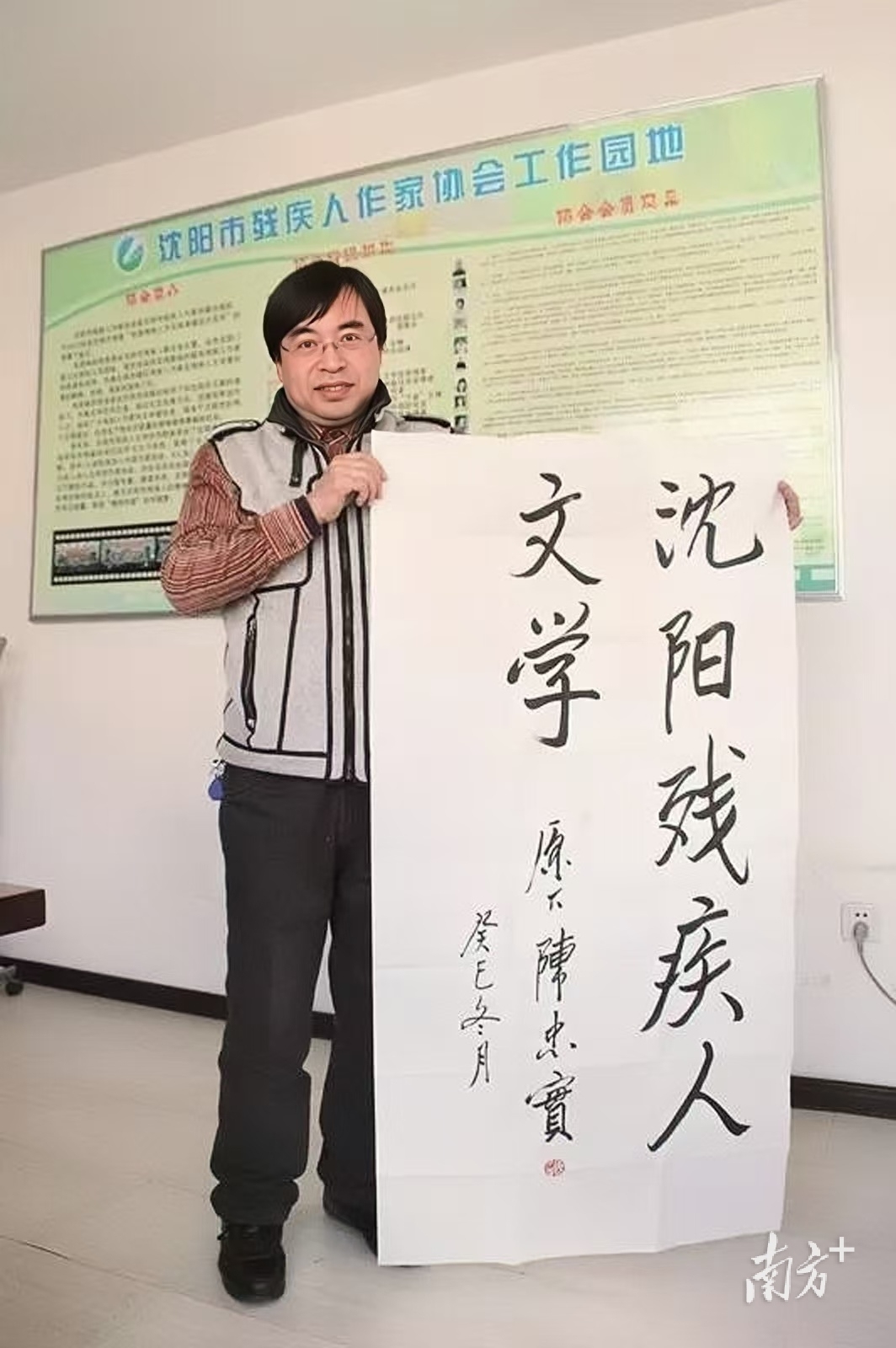 陈忠实为沈阳市残疾人作家协会写的书法。 资料图片