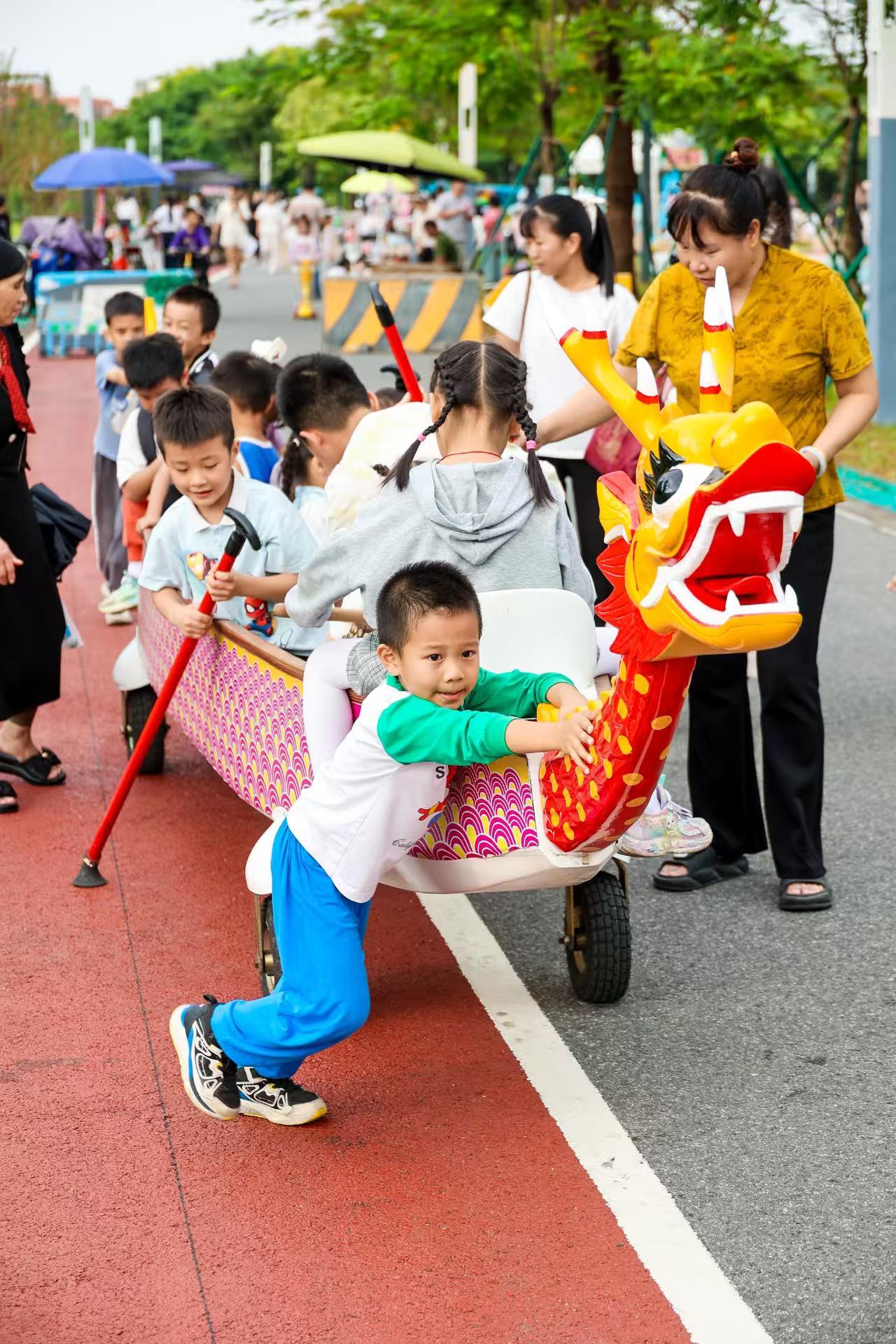 本次赛事不仅是竞速的擂台,更是文化的盛宴。赛场周边设置的“乐交会”龙舟文化体验区,推出旱地龙舟亲子赛、迷你龙舟模型制作、船桡彩绘等互动活动,让市民在观赛之余,沉浸式感受龙舟魅力。