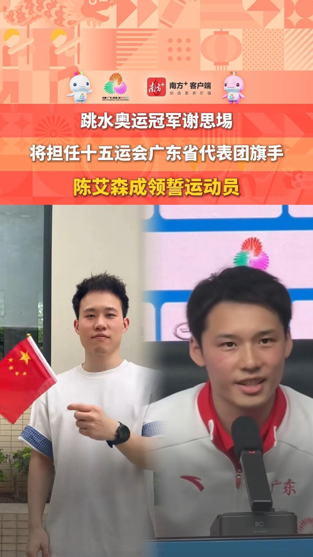 跳水奥运冠军谢思埸将担任十五运会广东省代表团旗手 陈艾森成领誓运动员