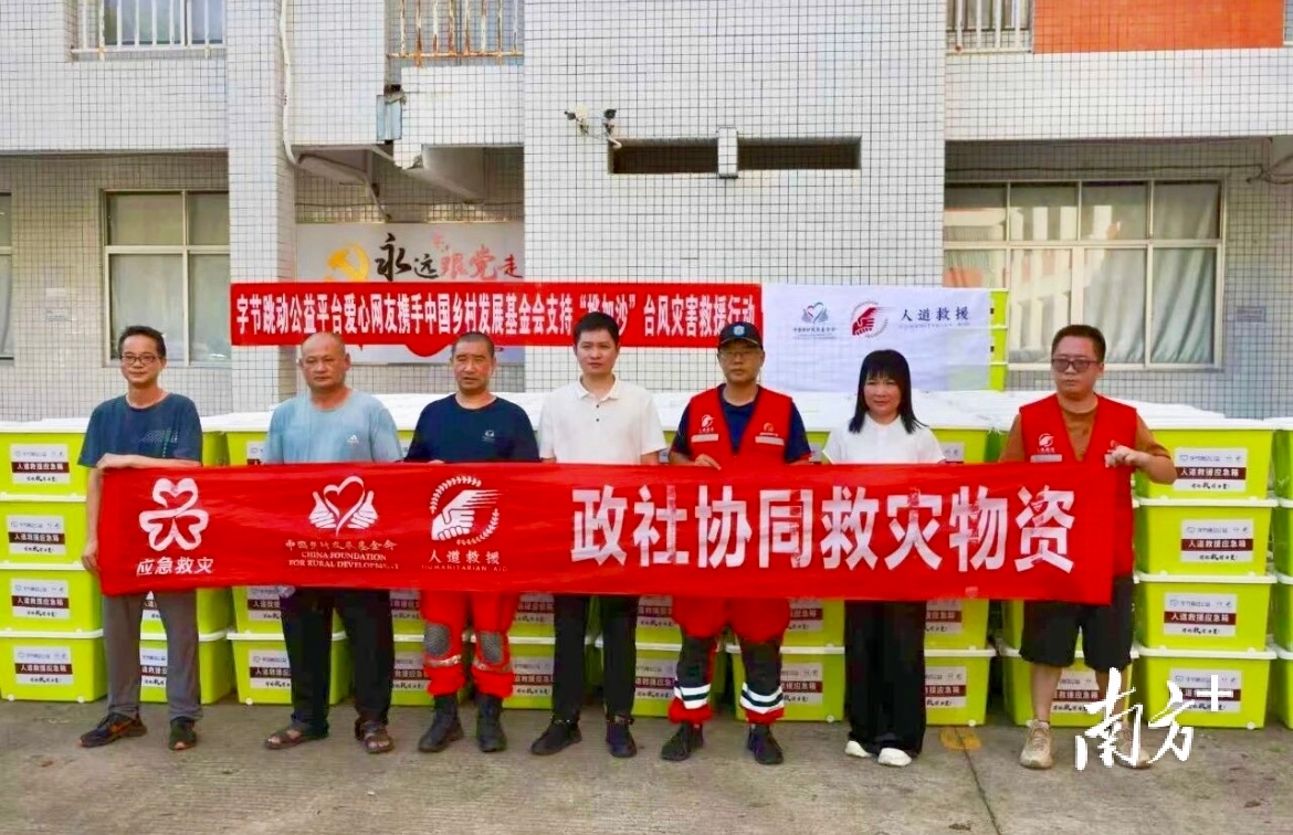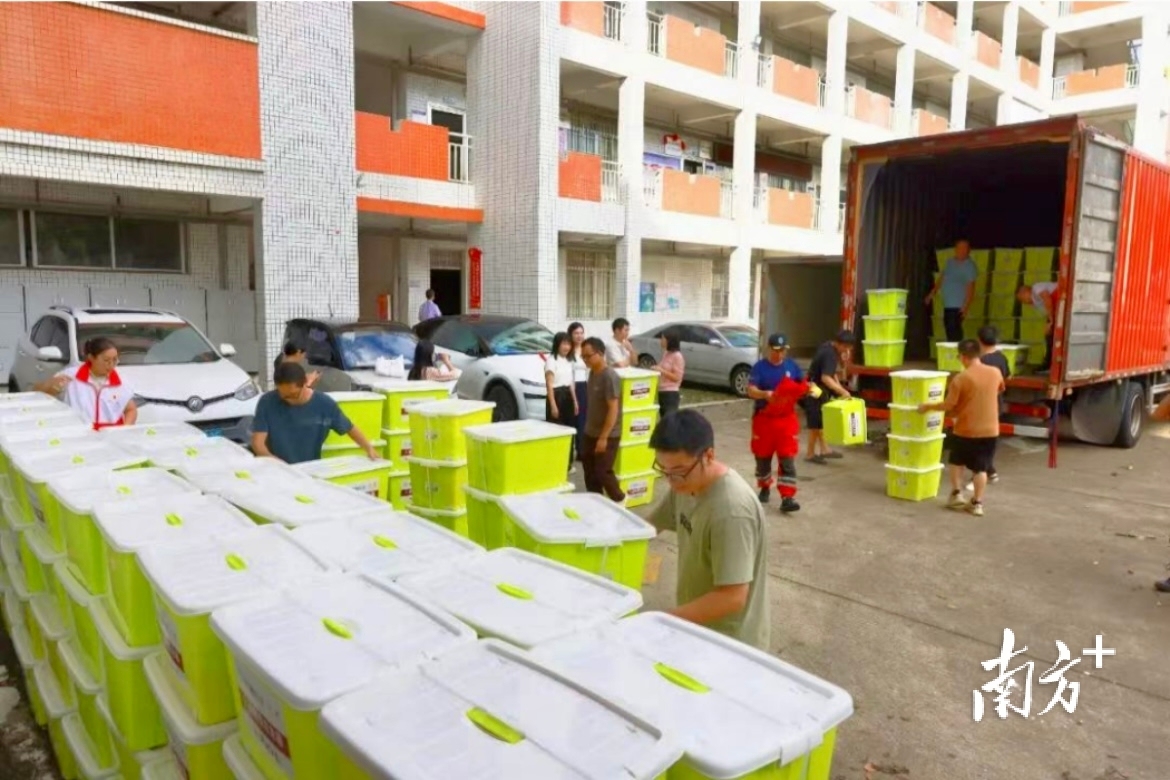 9月26日下午、27日上午,两辆分别悬挂着横幅的大货车缓缓停在江城区办公区,一箱箱封装整齐的人道救援应急箱映入眼帘——这是字节跳动公益平台爱心网友、卡特彼勒基金会携手中国乡村发展基金会捐赠的1000箱爱心物资,为台风“桦加沙”过后的江城区,送来实打实的重建助力。