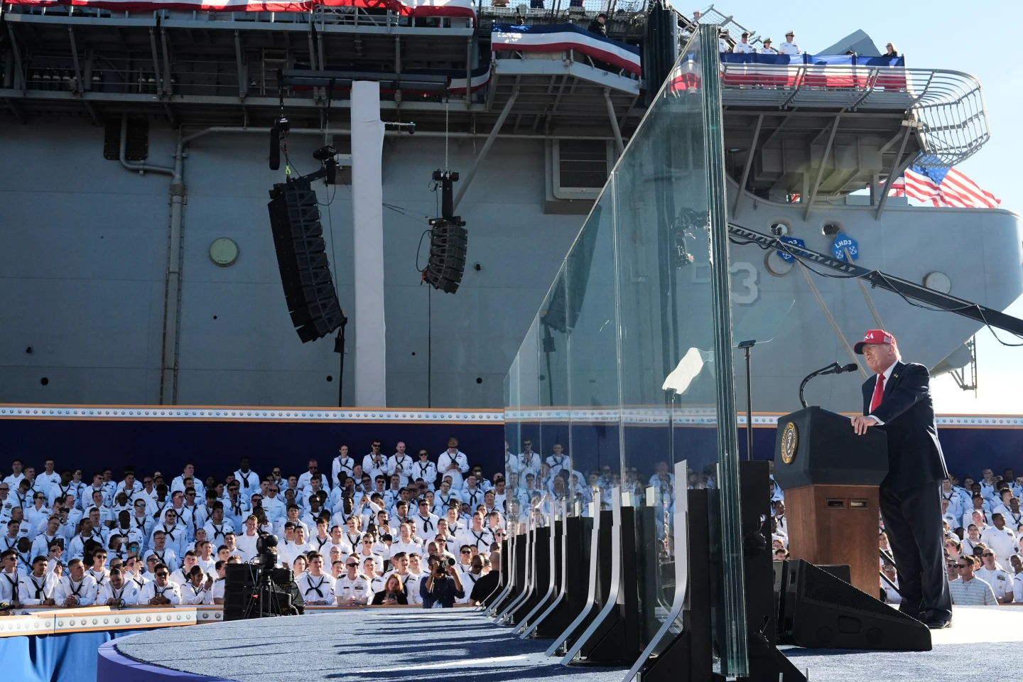 军队欠薪的同时,10月5日,特朗普在弗吉尼亚州诺福克市与第一夫人梅拉尼娅、国防部长赫格塞思及海军部长费伦共同主持了一场“海军250年历史上最盛大的生日庆典”。特朗普表示,“演出必须继续!我作为三军总司令不能让海军失望”。