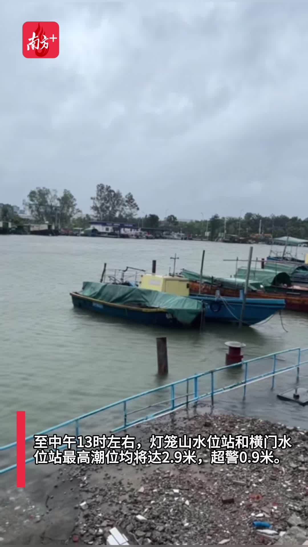 中山市南朗街道横门社区是横门渔港所在地,南方+记者从该社区了解到,从9月24日9时起,社区渔港外围的潮位开始上涨。至9时50分许,潮位上涨了近0.8米。