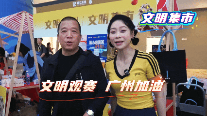 “文明集市”开进赛场周边,让体育盛会同时成为展示南粤文明新风尚的窗口。“文明广州”也在现场摊位设置了海报,向大家倡导文明观赛理念,并准备了丰富的文创产品给市民。