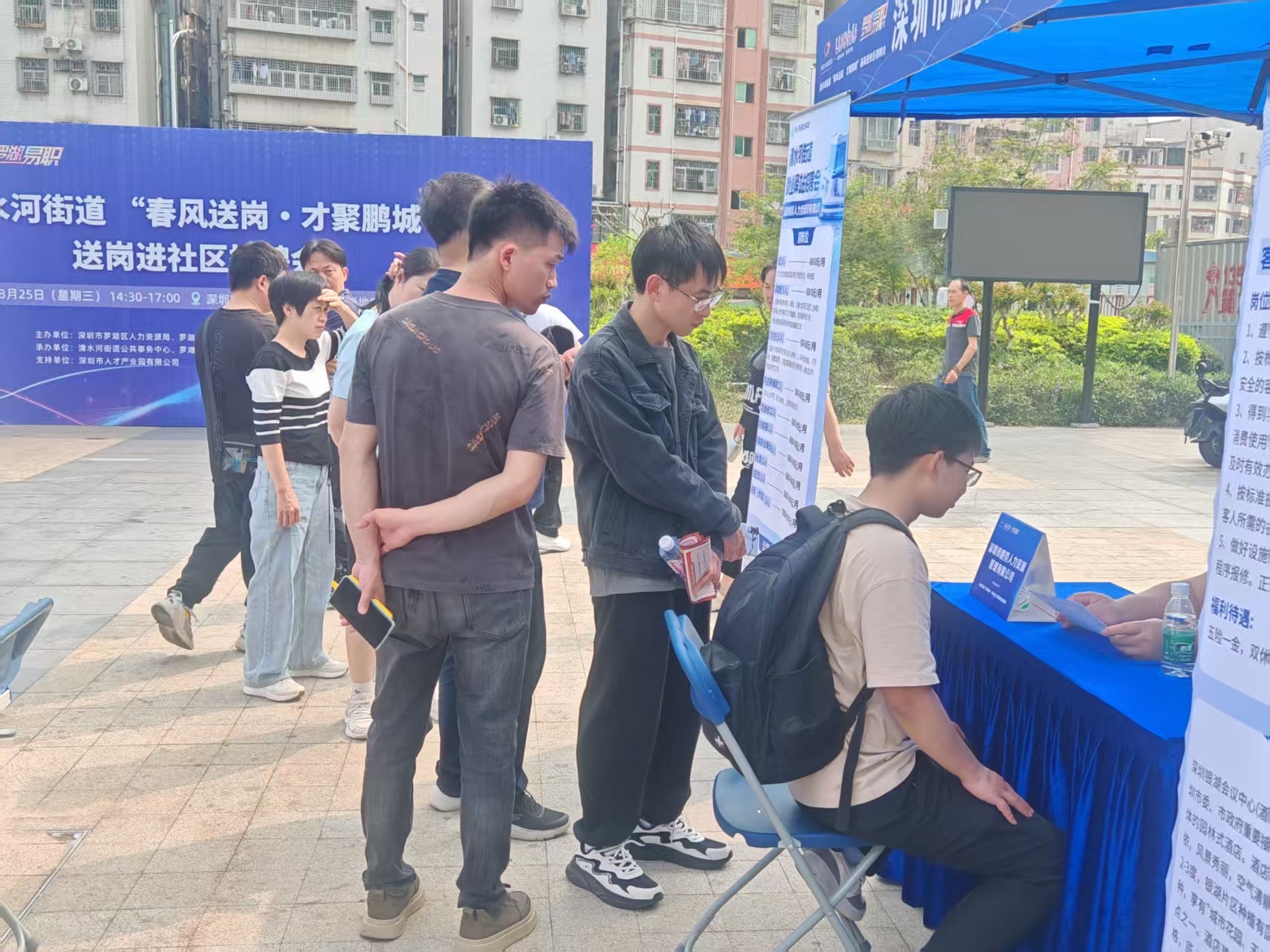 近日,罗湖区清水河街道在泥岗地铁站C出口广场举办“春风送岗・才聚鹏城”送岗进社区招聘会。与以往不同的是,这次不只有岗位,职业指导、政策解读、法律服务也一并“打包”送到居民家门口,一站式服务让现场热度不减、对接实效可感。