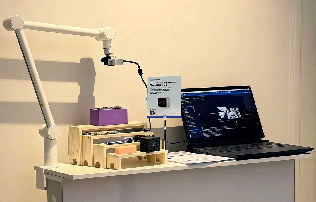 Gemini 305体积小巧,视场角表现优异,在20厘米处可清晰识别8.6cm×5.4cm的物体,性能超越国际同类产品。在机械臂腕部这一关键位置,每一度视野的提升都能让机器人更灵敏。