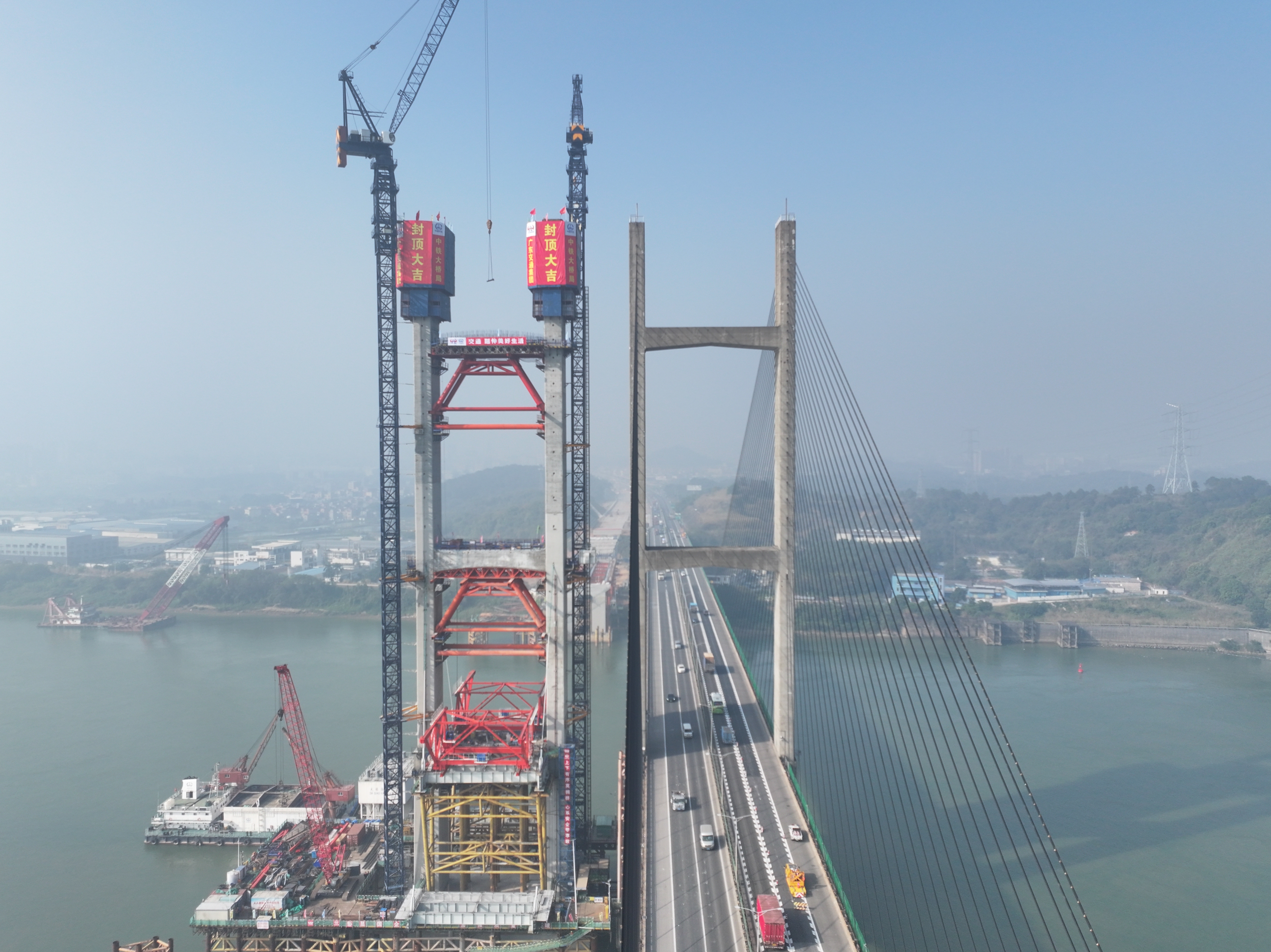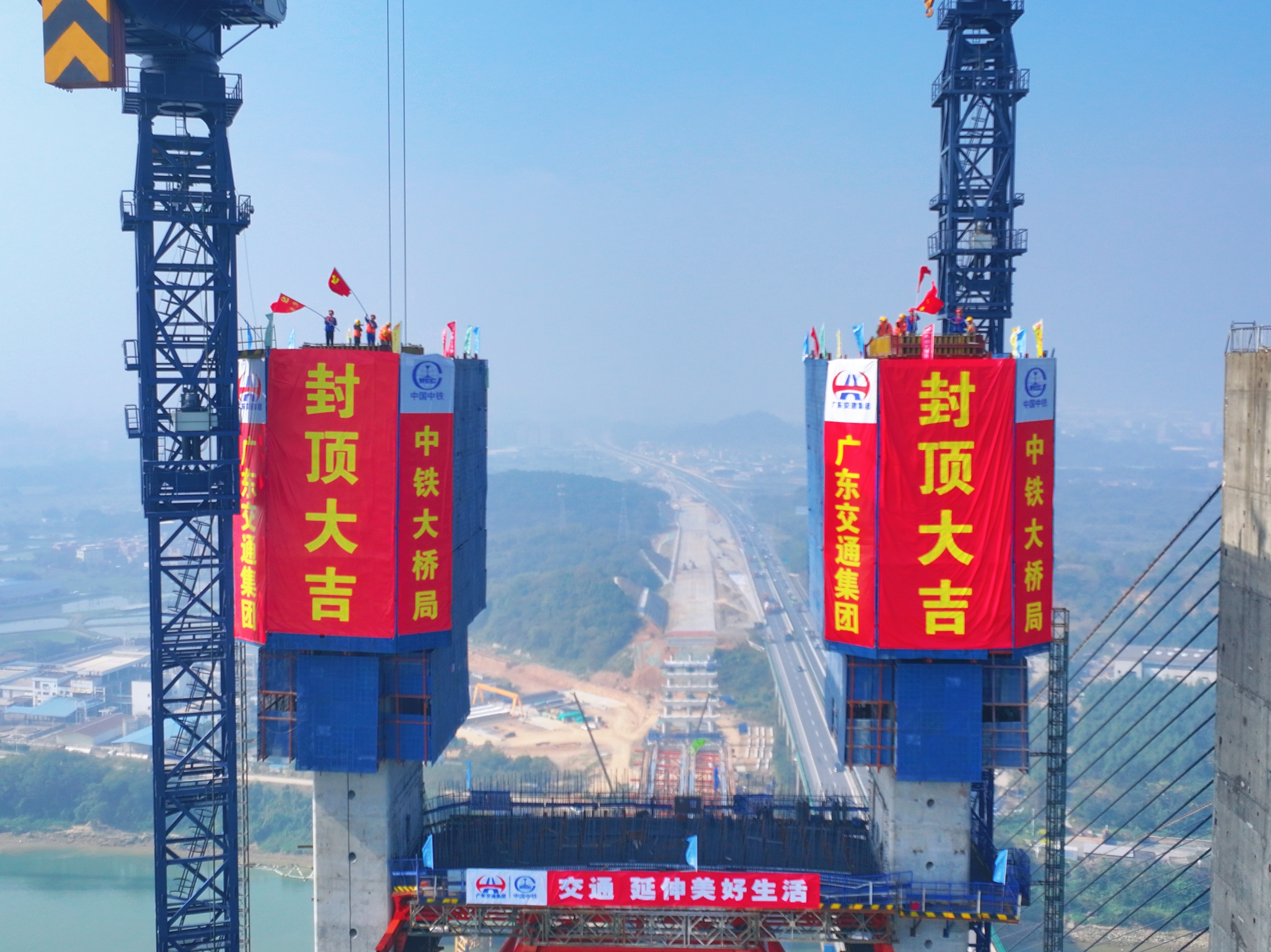 12月24日,西江上施工船只往来穿梭,随着最后一方混凝土精准浇筑到位,广东交通集团所属广肇高速改扩建项目新建金马大桥主塔正式封顶,为后续主桥钢梁架设及全线贯通奠定坚实基础。