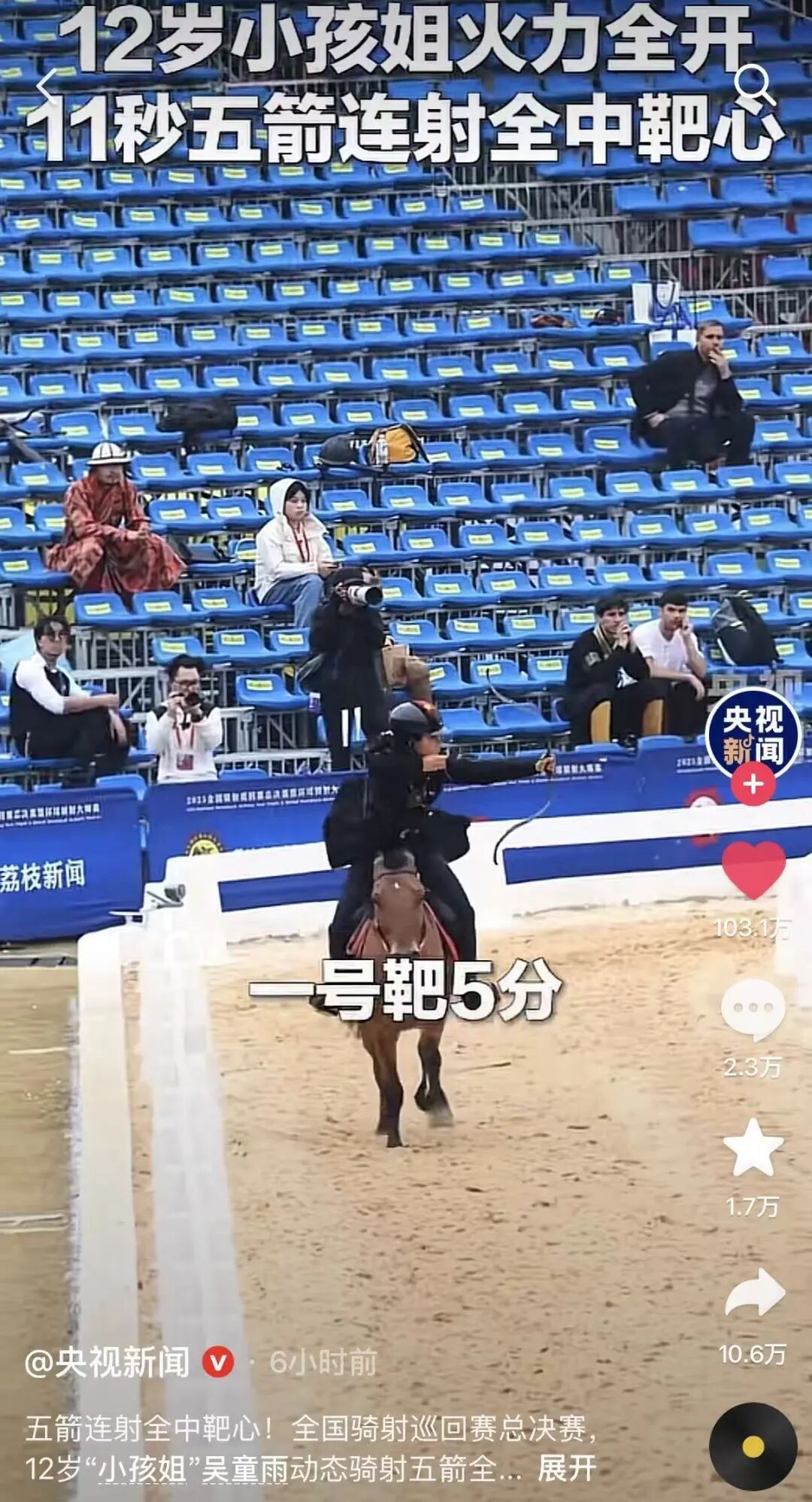 在不久前结束的2025全国骑射巡回赛总决赛中,她出色发挥,尤其是11秒五箭连射全中靶心的视频火爆网络。“那次有点超常发挥了,”她坦言,“心里还是比较激动的,同时也很开心,有这么多人能关注到我这个成绩。”