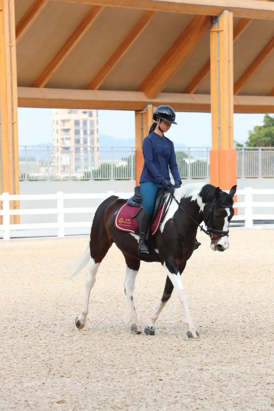 在光明国际马术中心,吴童雨逐一参观了比赛场、训练场、马厩、马诊所等专业功能区,并亲自挑选了名为“米卡”的马匹进行骑乘体验。