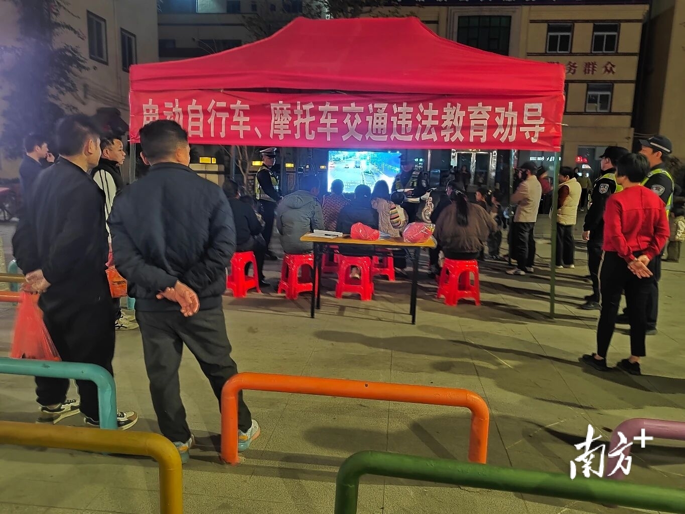 汕尾市公安机关采取“查处+教育”模式,连续6日在学校、医院、商圈、网红景点、工地货场等重点场所设立了69个劝导点位,严查严纠电动自行车、摩托车驾驶人不按规定车道行驶、未佩戴头盔、违法载人、闯禁行、闯红灯、逆行、无牌无证及故意遮挡号牌等违法行为,组织违法当事人现场观看警示教育片、参与劝导体验,并解读交通法律法规,引导群众遵循“早点走、靠右行、慢慢开”“有牌证、戴头盔、限两人”的骑行理念。