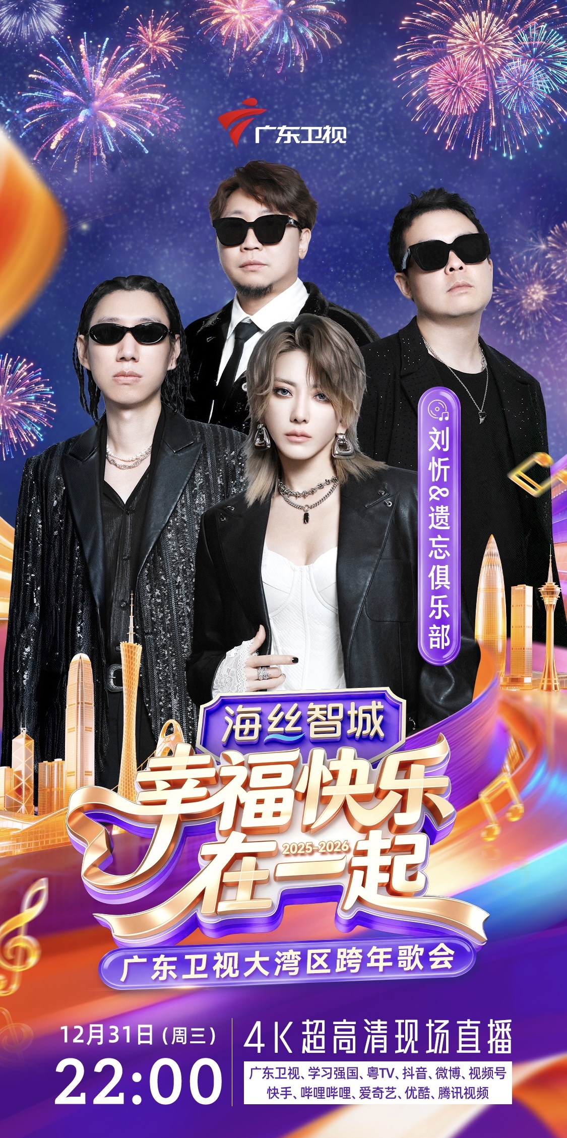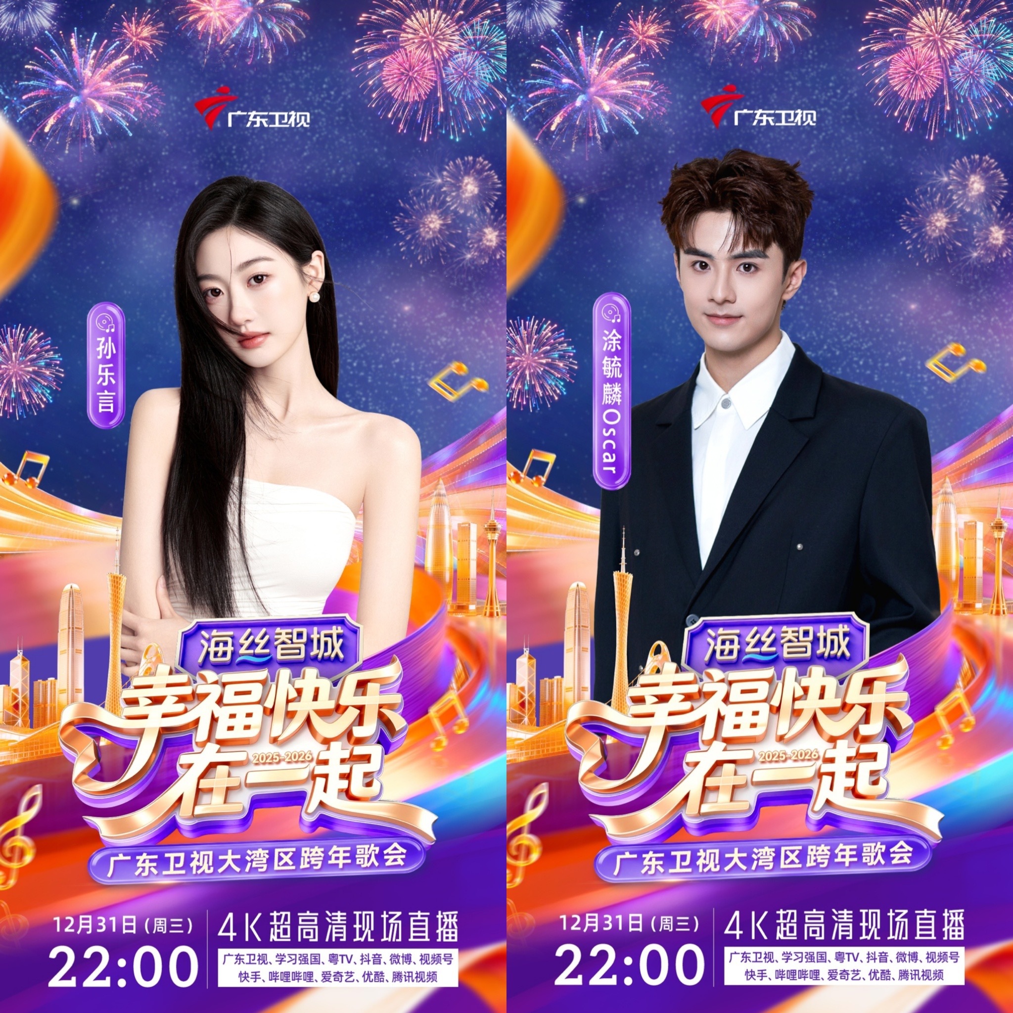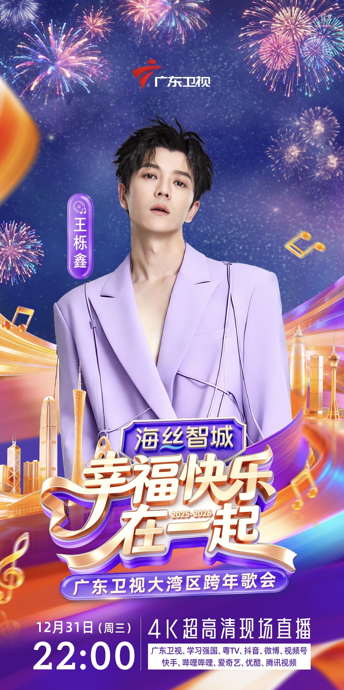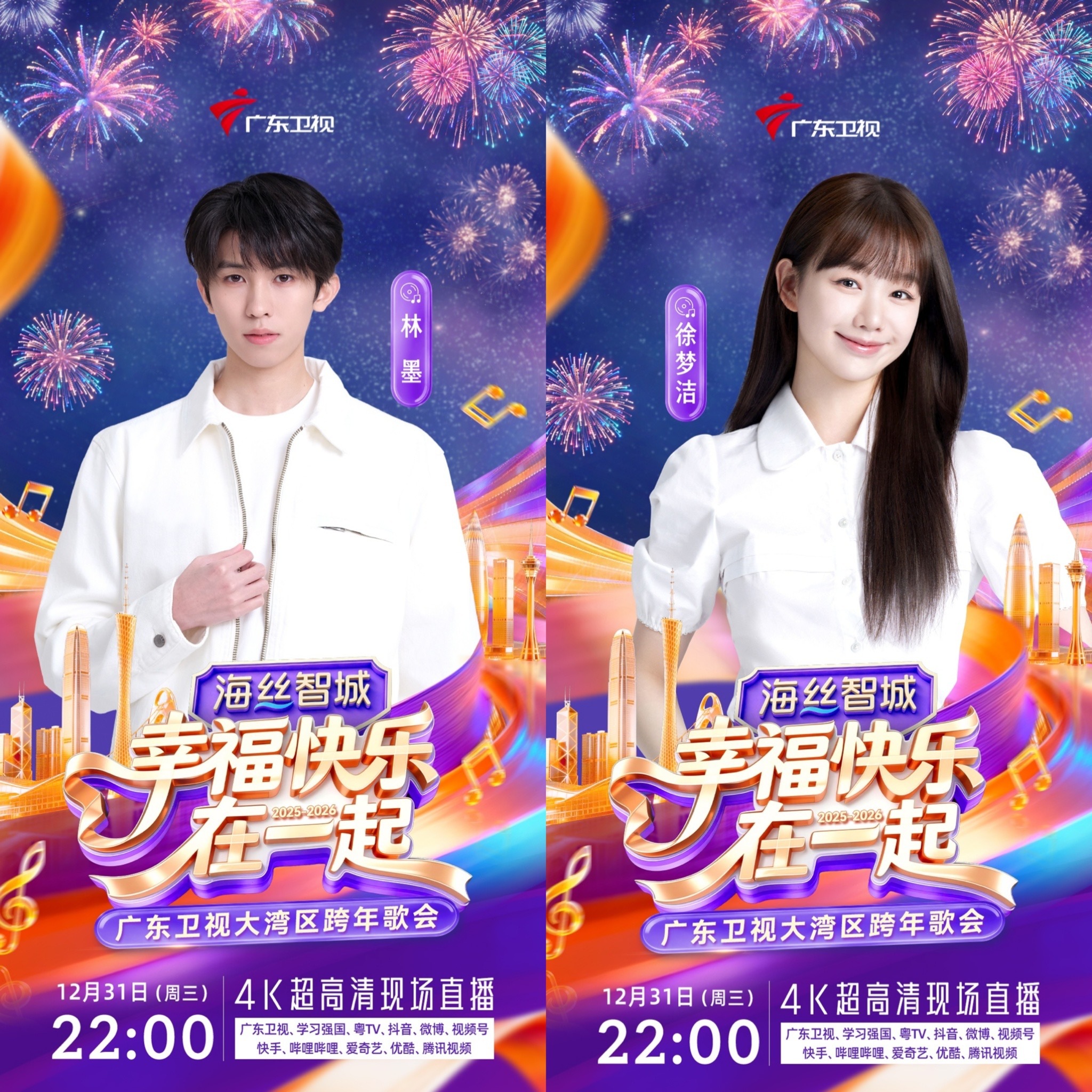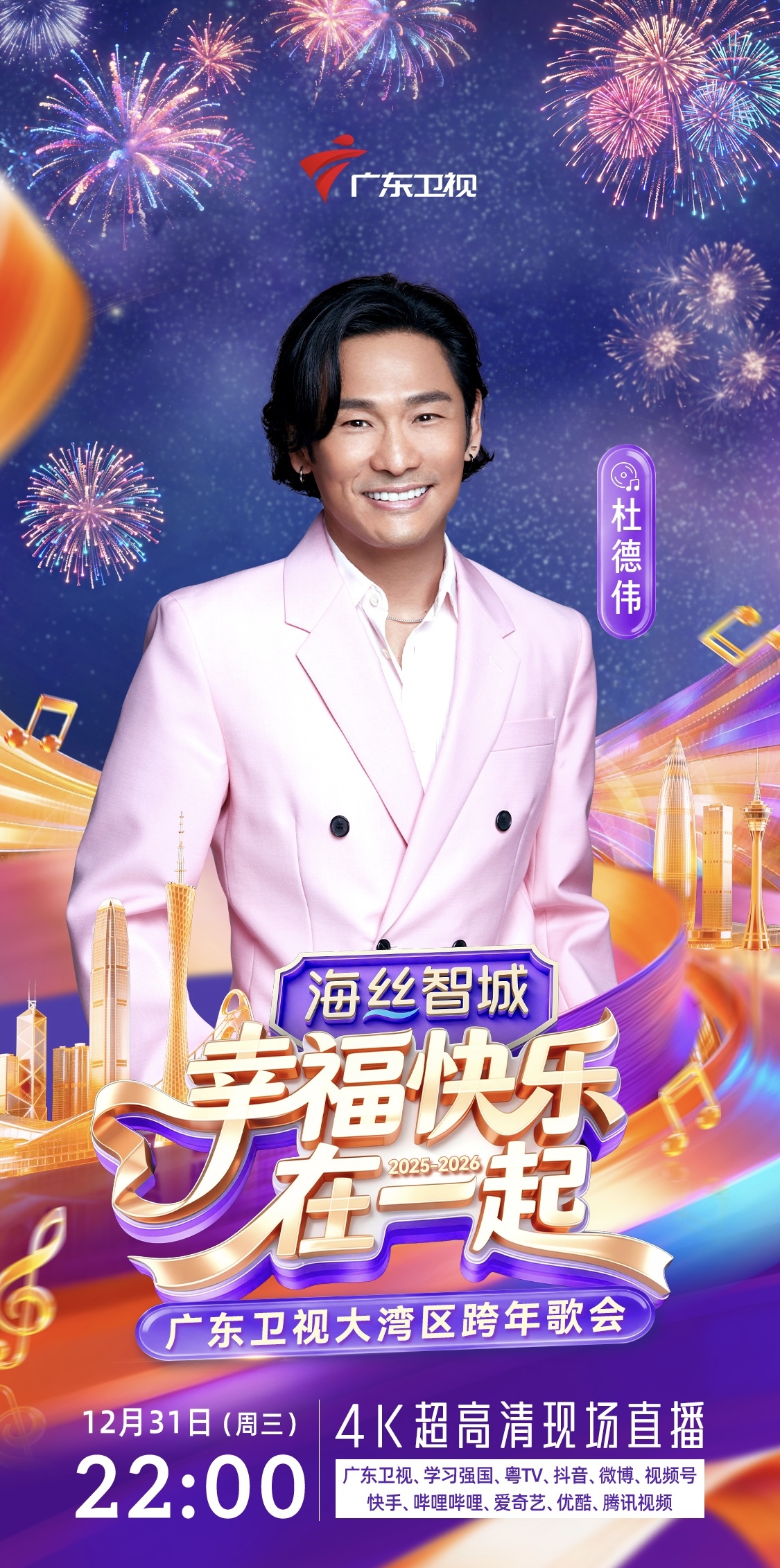 12月31日晚10点,《幸福快乐在一起——2026广东卫视大湾区跨年歌会》即将在广州市科学城・海丝智城热力开唱。届时,杜德伟、王栎鑫、刘忻&遗忘俱乐部、林墨、徐梦洁、孙乐言&涂毓麟Oscar、罗嘉豪、SING女团、东山少爷、鱼蛋、王以诺等跨世代阵容集结,用旋律串联几代人的幸福记忆,陪伴观众迎接2026年的到来。