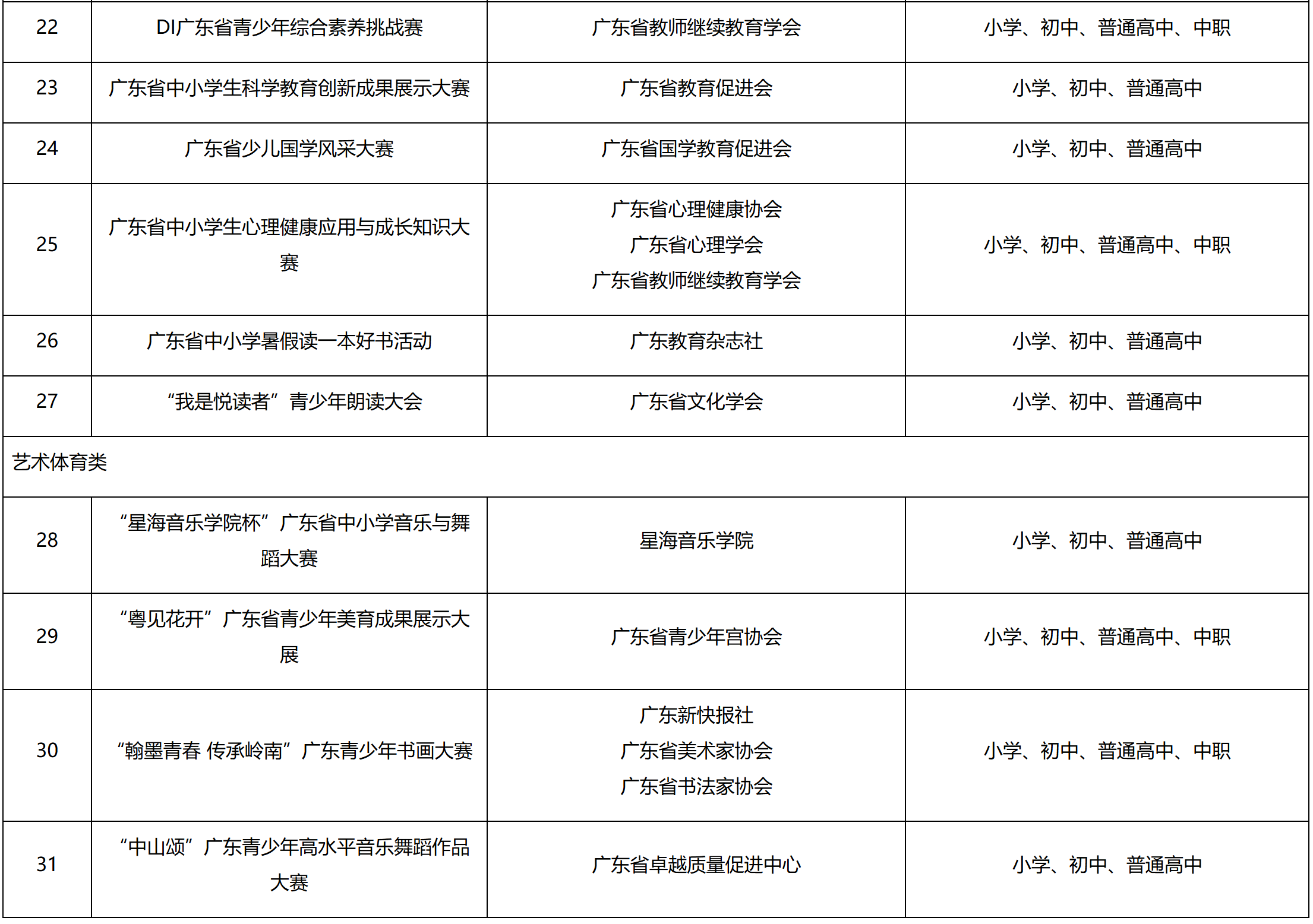 以下为2025-2028学年广东省面向中小学生的竞赛活动白名单。