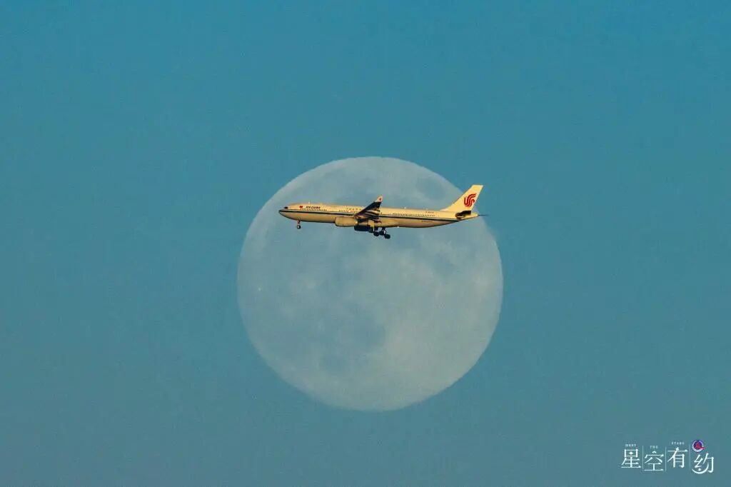 ▲2025年12月4日晚,在北京市拍摄的一架飞机飞过超级月亮。(吴鲁萍/摄)来源:新华网
