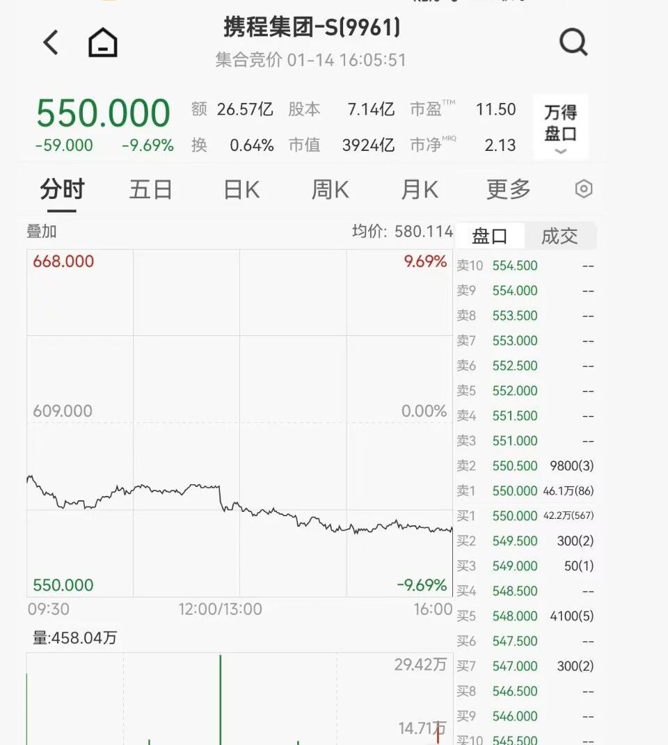 据Wind,携程港股直线下跌,尾盘一度跌超9%,报550港元/股。目前,携程方面尚未对此事件进行回应。