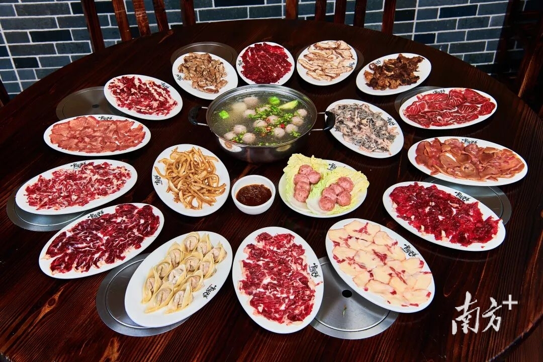 在官塘镇,牛肉的“精细”不仅体现在新鲜度上,更体现在刀工和部位选择上。“肉要切得薄,看起来要晶莹,部位不同切法不同。”陈锐坚说,不同部位的牛肉,口感差异很大,必须用对应的切法才能最大化呈现其风味。比如,吊龙要切得略宽,突出其肥瘦相间的口感;五花趾则要切得薄,保证涮煮后脆弹。