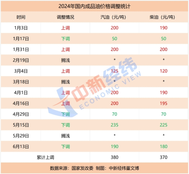 今年以来,国内成品油价已经历十二轮调整,呈现“五涨四跌三搁浅”格局,涨跌互抵后,汽、柴油标准品分别累计上涨380元/吨、370元/吨。若本轮调价落地,年内成品油价格调整将呈现“六涨四跌三搁浅”格局。
