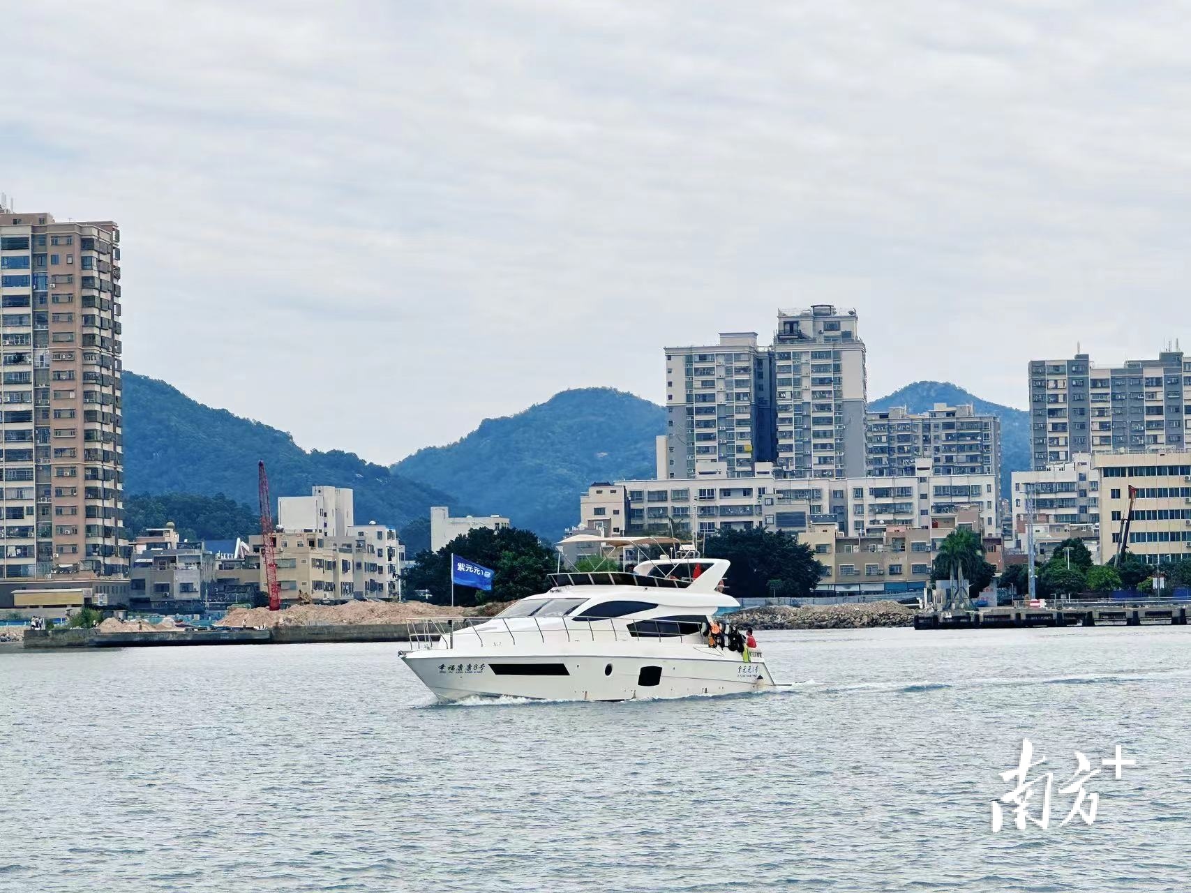 首批前往江牡岛的游客乘坐豪华游艇共赴一场别开生面的海洋牧场探索之旅。 南方+ 陈欣欣 摄