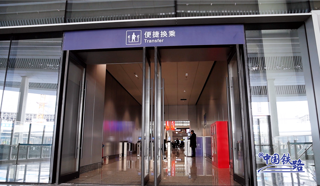 车站采用便捷换乘专用通道及线下换乘候车厅相结合的方式,使用高架连廊开设便捷换乘专用通道。旅客可以通过高架候车层南北进站扶梯和垂梯到高架层进行便捷换乘,无需出站后再次进站。