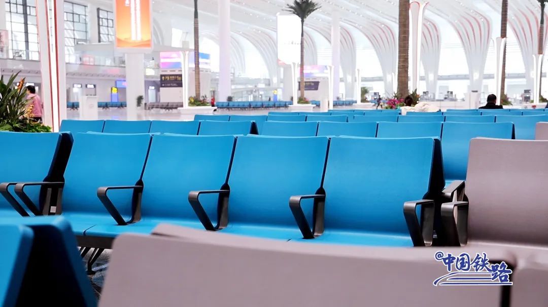 以海底蓝为主体色调,采用一体化设计,符合人体工学,倾斜角度能让旅客更加舒适。同时,一体化的设计更方便清理保洁和后续维修。