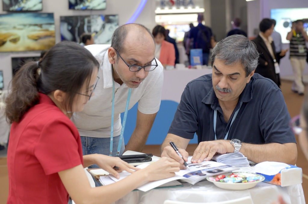 10月16日,卡塔尔客商在广交会上参观、洽谈。新华社记者 卢汉欣 摄