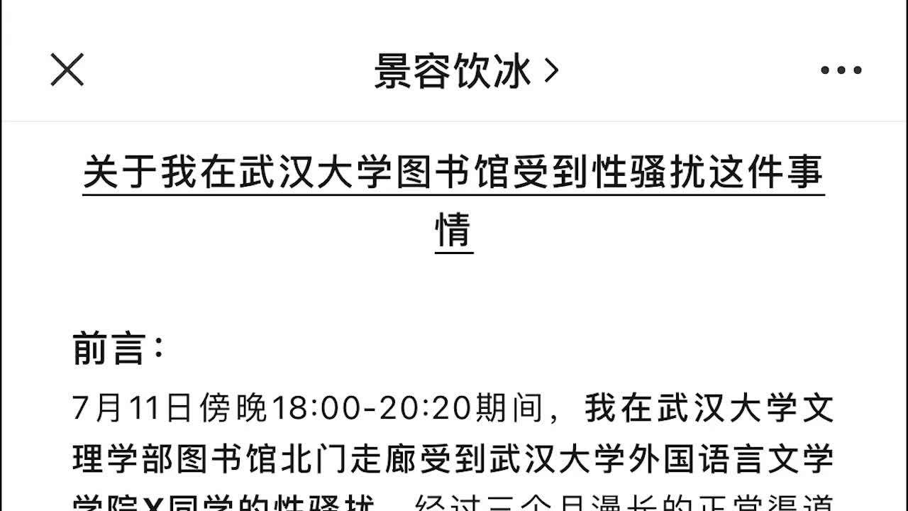 女生举报三个月前在图书馆遭性骚扰,武大通报成立工作组调查