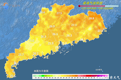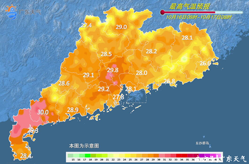 具体预报:16日,雷州半岛南部和粤东市县多云间阴天局部有阵雨,其余市县多云间晴天。最高气温:粤东市县26~28℃,其余大部市县28~31℃。