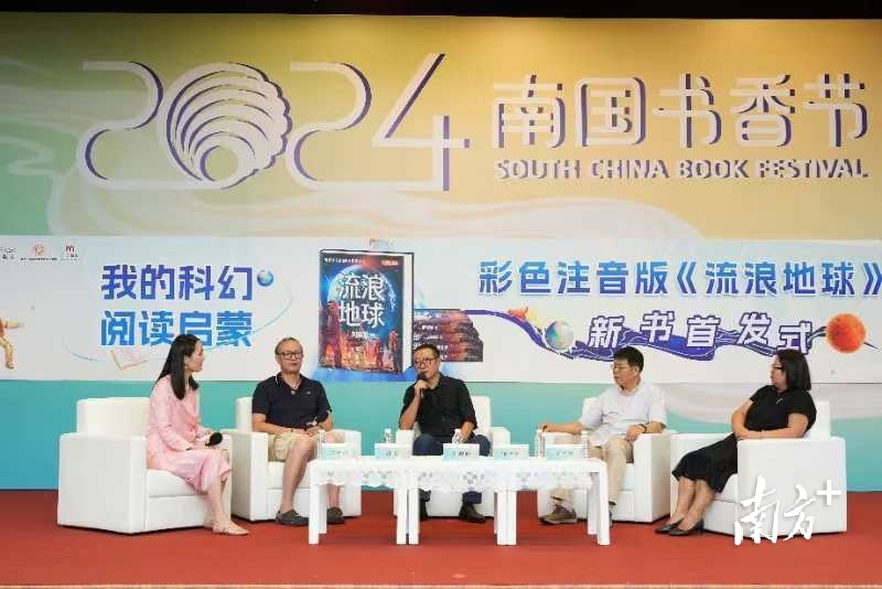 8月17日,著名作家刘慈欣做客2024南国书香节,与知名少儿科幻作家超侠,科幻出版、研究专家徐世新、王卫英,科幻阅读推广人陈柳岐共话科幻启蒙。本次活动由中国科学技术出版社有限公司、北京元宇科幻未来技术研究院联袂推出。