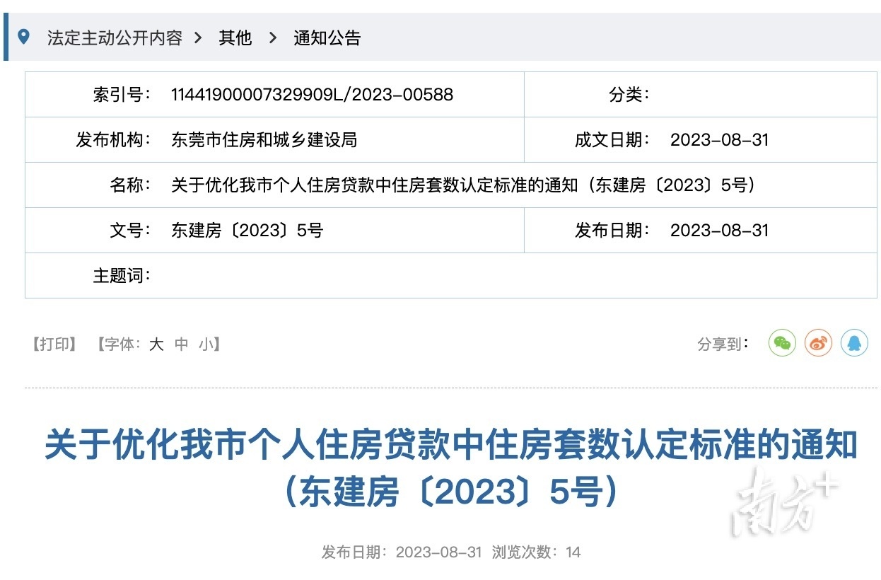 东莞市现就优化个人住房贷款中住房套数认定标准通知如下: