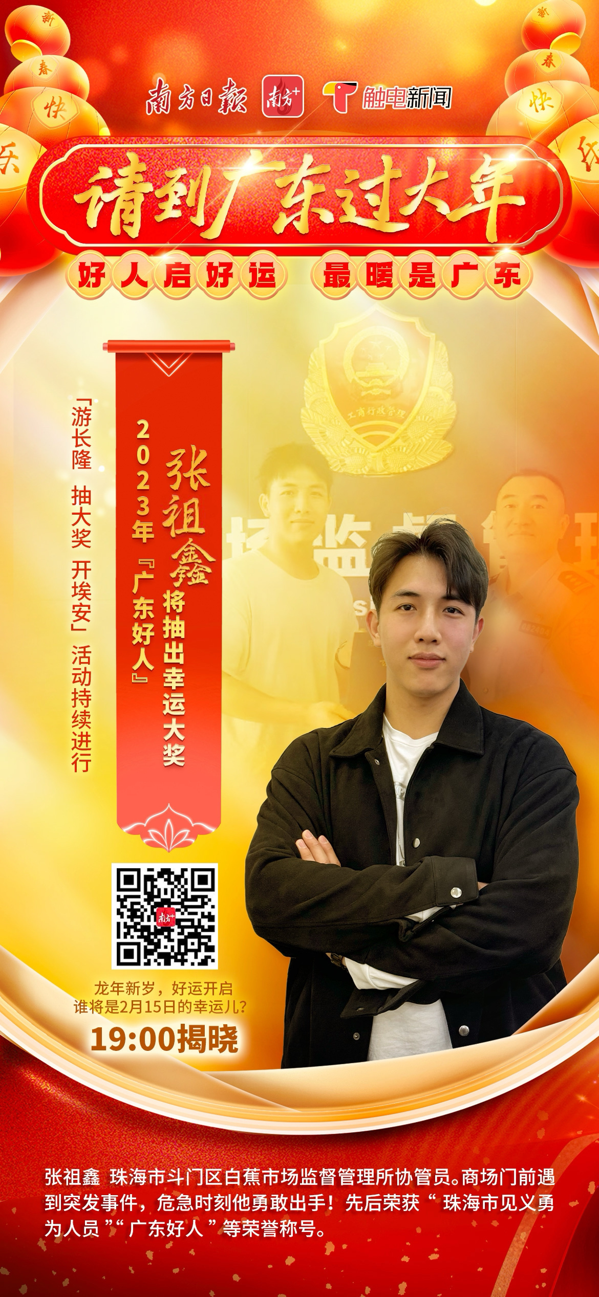 2月9日至2月14日,由南方+、触电新闻主办的“请到广东过大年之游长隆、抽大奖、开埃安”活动连续开出六个大奖,江苏的项女士、新疆的屈先生、深圳的王先生、新疆的席女士、佛山的潘女士、江苏的吴先生各获奖一辆全新广汽埃安AION Y Plus智能纯电车的使用权。2月15日(初六)开奖活动将于19时举行,2023年“广东好人”张祖鑫将开出幸运大奖!一同见证第七位“锦鲤”诞生!预约直播>>