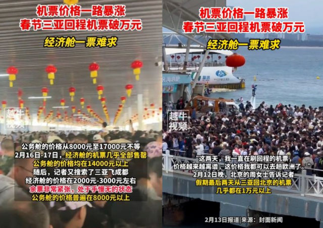 春节假期过半,海南出岛客流已攀至高峰,离岛机票紧张。机场、航司等方面表示,将调配投放更多运力,确保出岛旅客返程顺畅。据了解,三亚机场部分机位正在维修,难以进一步增加运力。为此,各航司建议未提前购票的游客避免从三亚这个热门城市直飞,多数情况下,从海口、博鳌出发比直接从三亚出发更具可行性。也可以先从海口出发,到附近城市再转机。海南省旅游和文化广电体育厅行业管理和安全监管处建议游客也可到新海港乘船离岛,相关部门协调新海港增加运力,这样游客离岛成本将大幅下降。详情>>