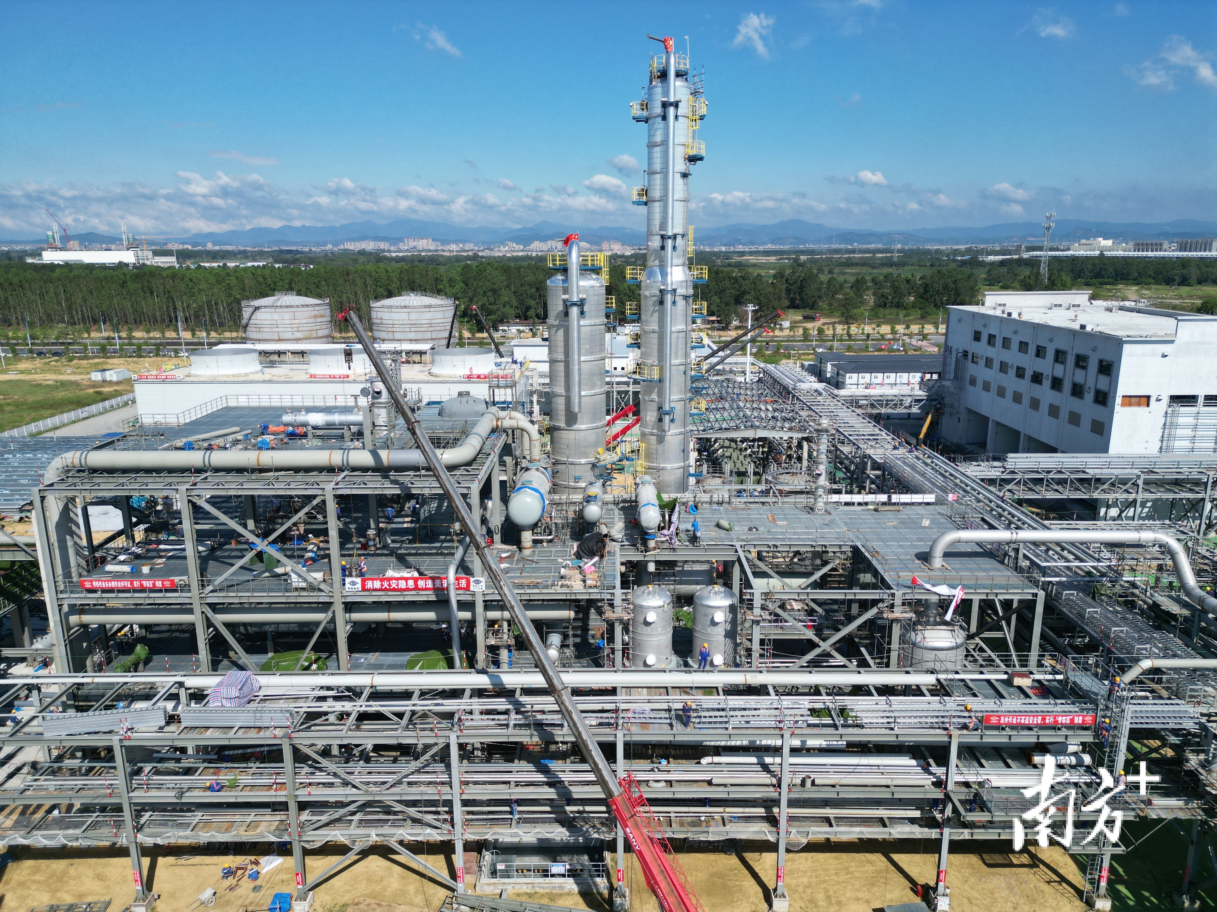 广物控股集团投资建设的揭阳大南海醋酸项目基地正进行设备安装。