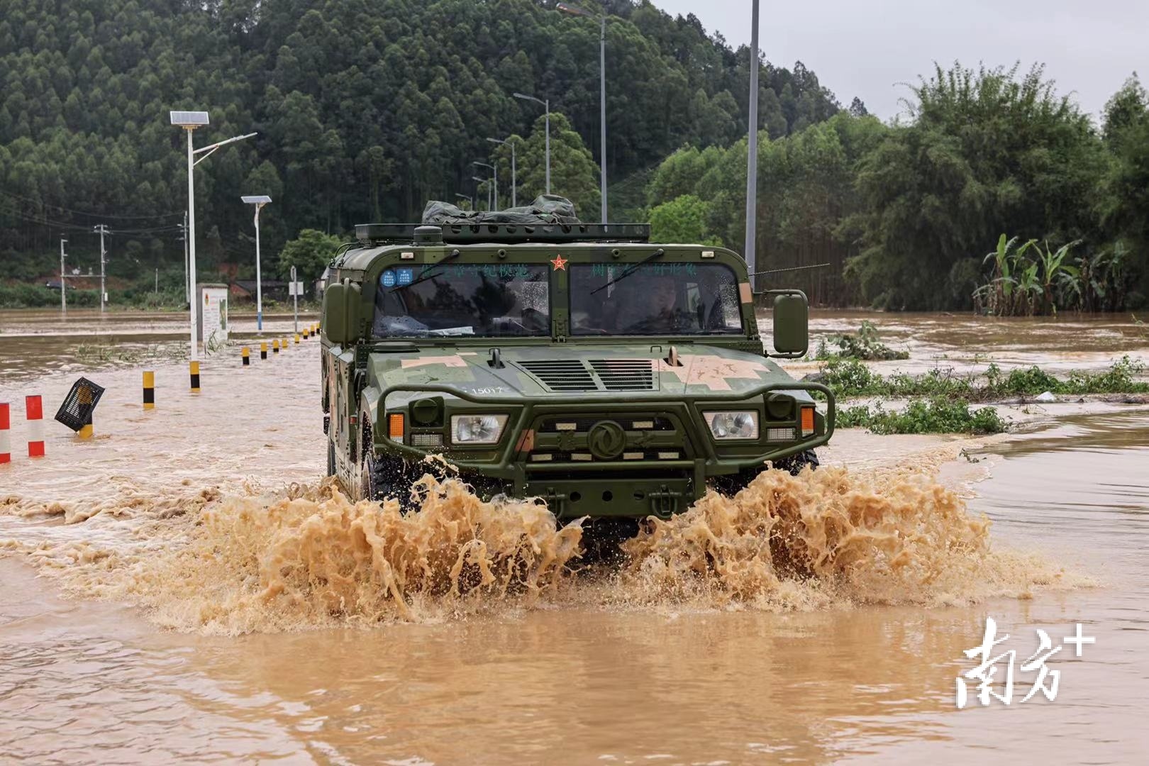 上午11时许,凭借着较好的地形适应能力,三辆军绿色装甲车没有犹豫,往水深处驶去。泛黄的水淹没车身,滚动的轮胎搅起波澜。