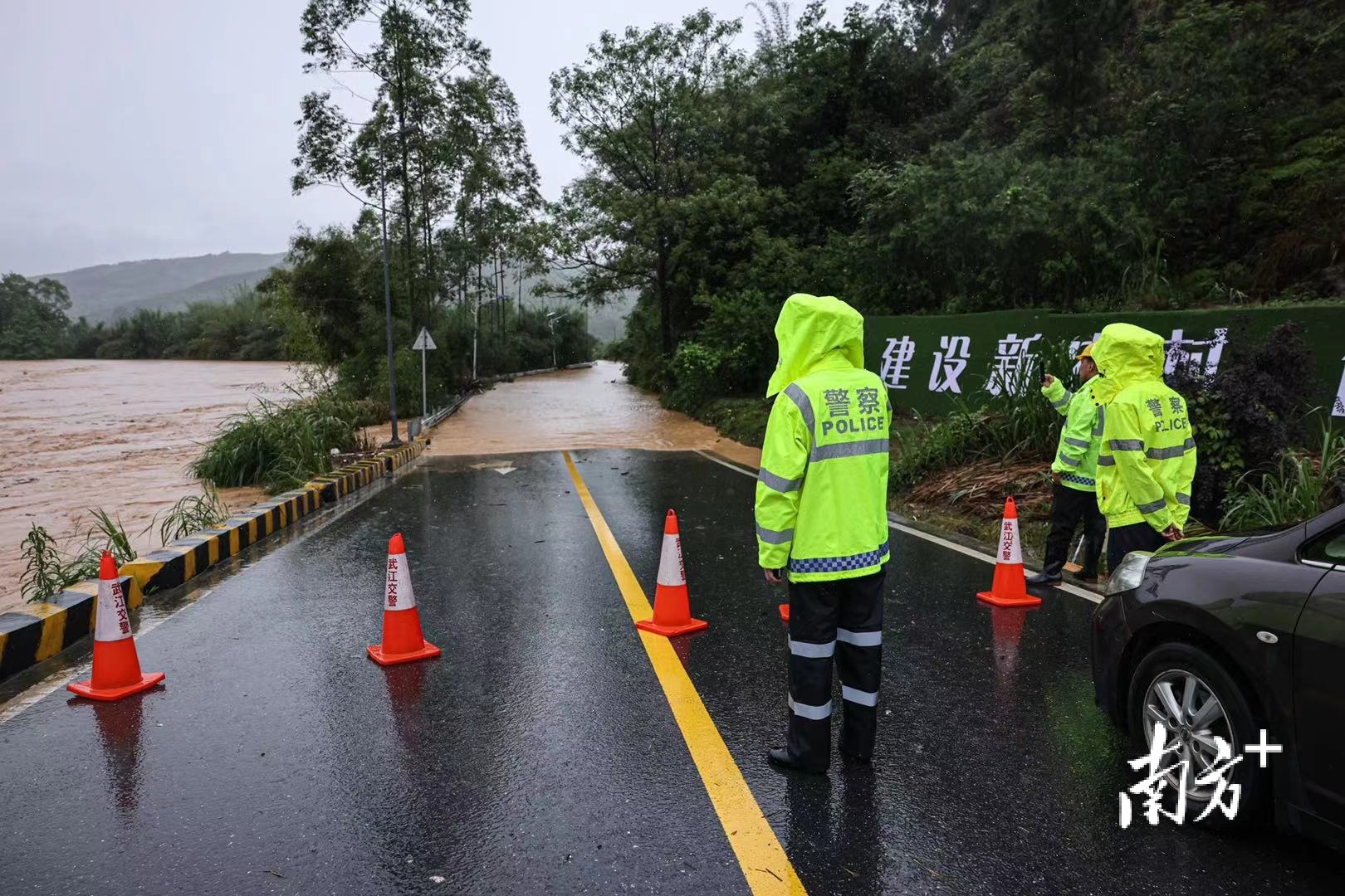 4月21日上午,韶关市武江区江湾河水上涨至318县道,交警已在风险路段设卡。在董村寺桥附近,旁边的龙归水河段已经涨水将公路淹没。现场工作人员介绍,测绘人员在前端找位置进行无人机勘测时,车辆被水围困,人员提前撤出。在韶关武江龙归镇,当地工作人员紧急进行道路抢修。