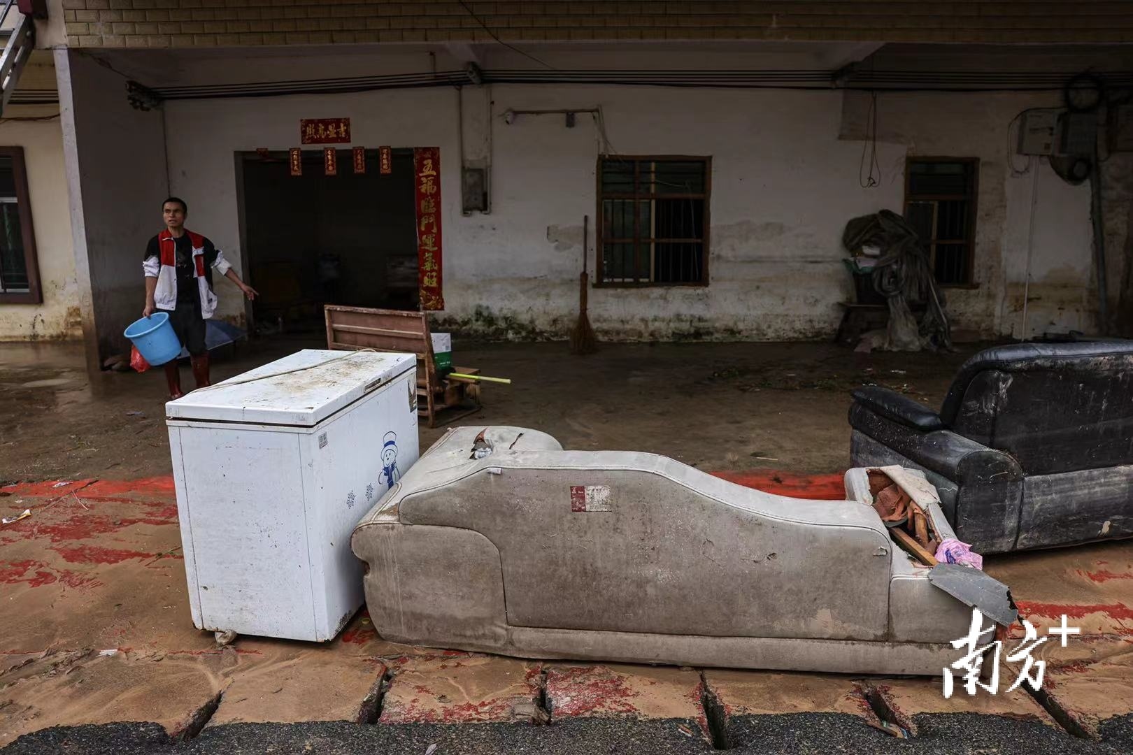 “昨晚家里的水就已经退了,今天家里没浸水,家人还在里面。”方田村村民欧先生今天放假回家,上午10时许在董村寺桥附近被洪水拦住去路,被堵位置距离其家仅1公里左右。