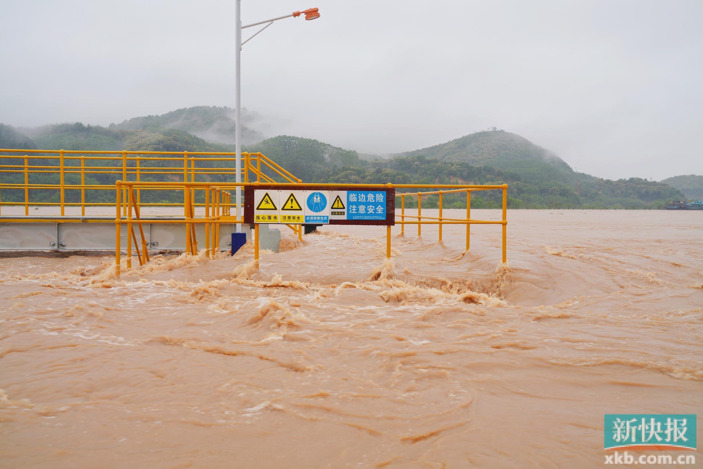 新快报讯 4月21日上午10时,在清远英德的浈阳峡风景区一带,北江的水位上涨、流速湍急,江水甚至漫过了沿岸的部分设施。