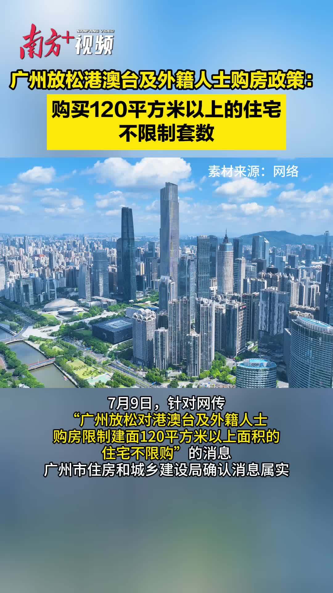 7月9日,针对网传“广州放松对港澳台及外籍人士购房限制,建面120平方米以上面积的住宅不限购”的消息,南方+记者与广州市住房和城乡建设局确认消息属实。目前,相关政策于上周已经开始执行。具体内容如下: