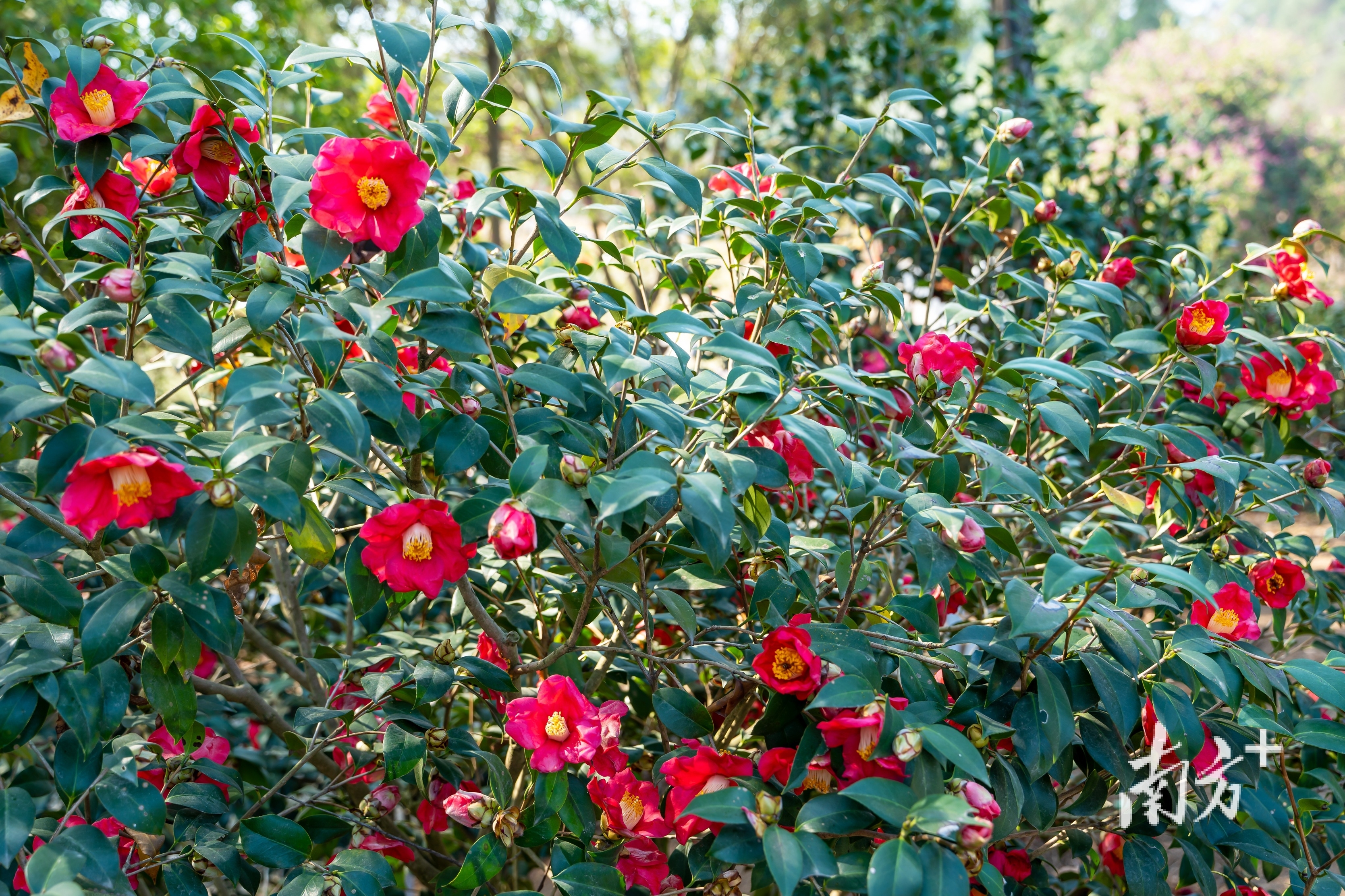 茶花则以层层叠叠的花瓣,吸引着游客的目光。
