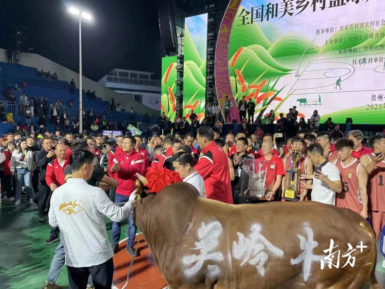 广东沙溪队获得全国“村BA”总冠军的奖品包括一头关岭牛,将被运送回沙溪。