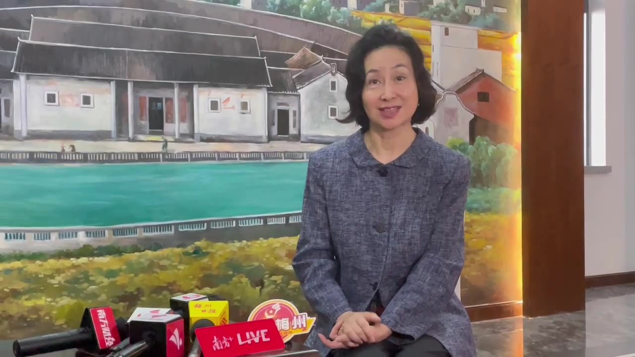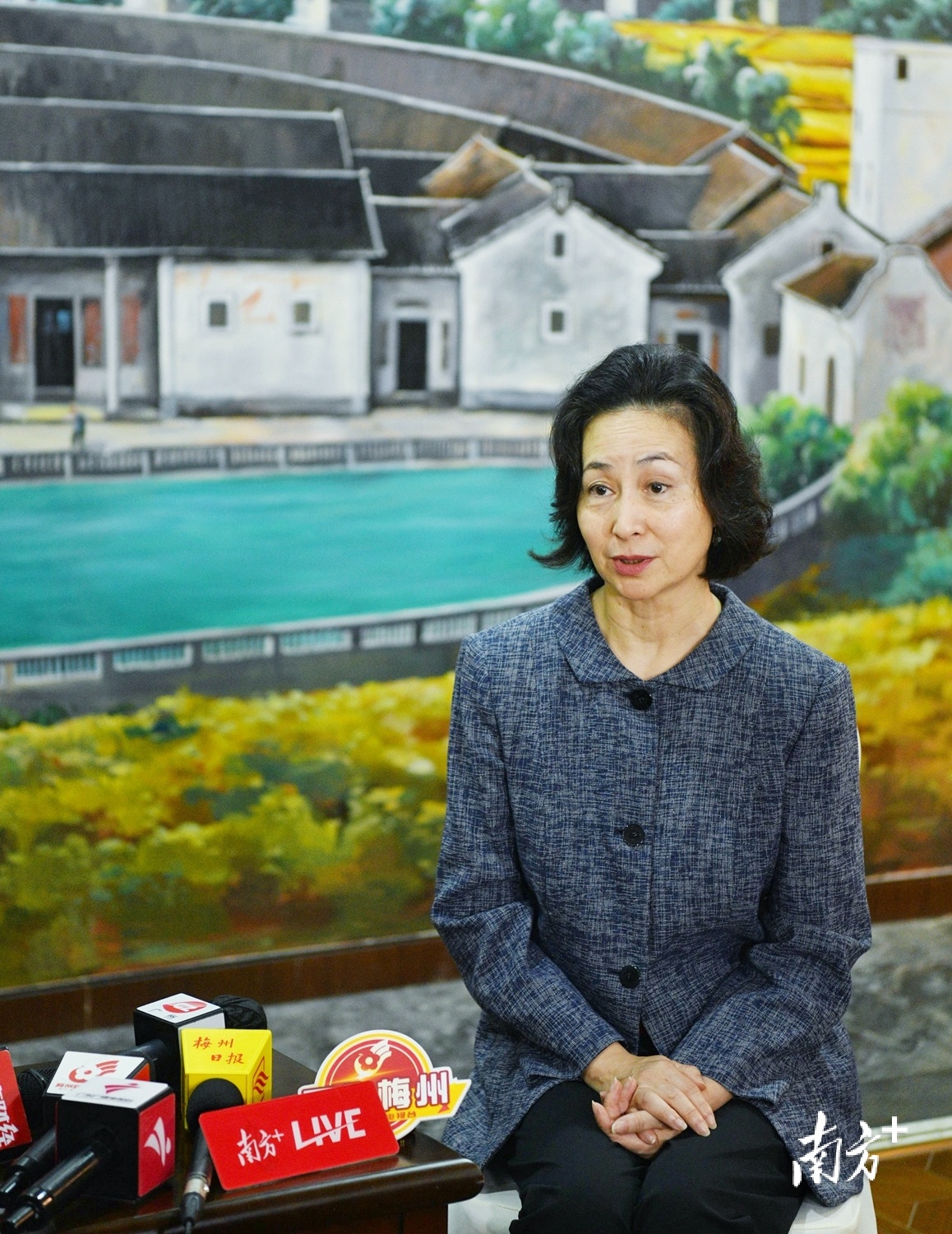 在客商大会开幕式结束后,何超琼接受南方日报、南方+记者采访。她表示,此次来到梅州,感受到了这个城市发展的脉动。“今天全球客商汇聚在这里,共同为了推动梅州经济社会发展,能够参与其中,我感到很荣幸。”