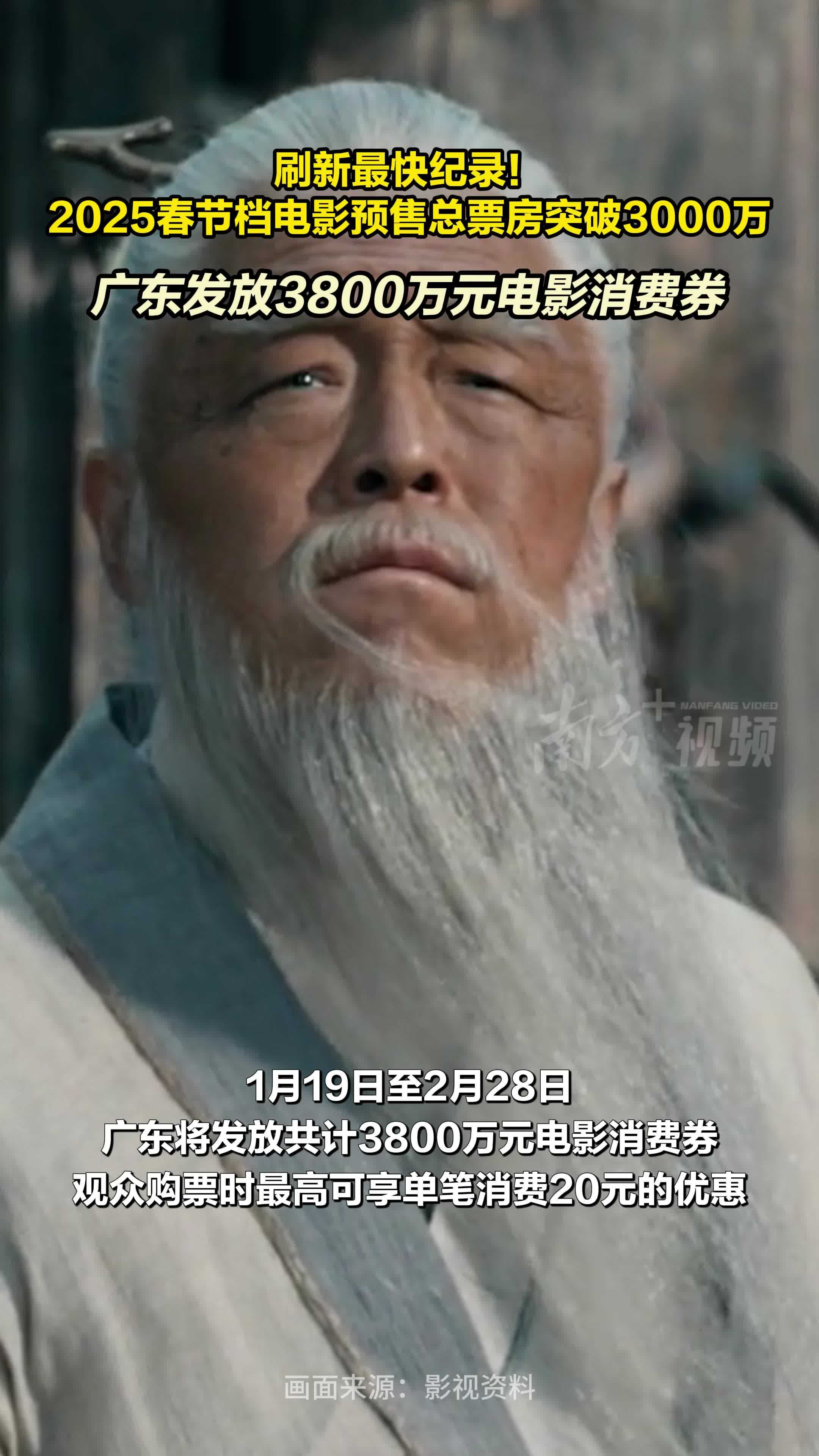 刷新最快纪录! 2025春节档电影预售总票房突破3000万,广东发放3800万元电影消费券